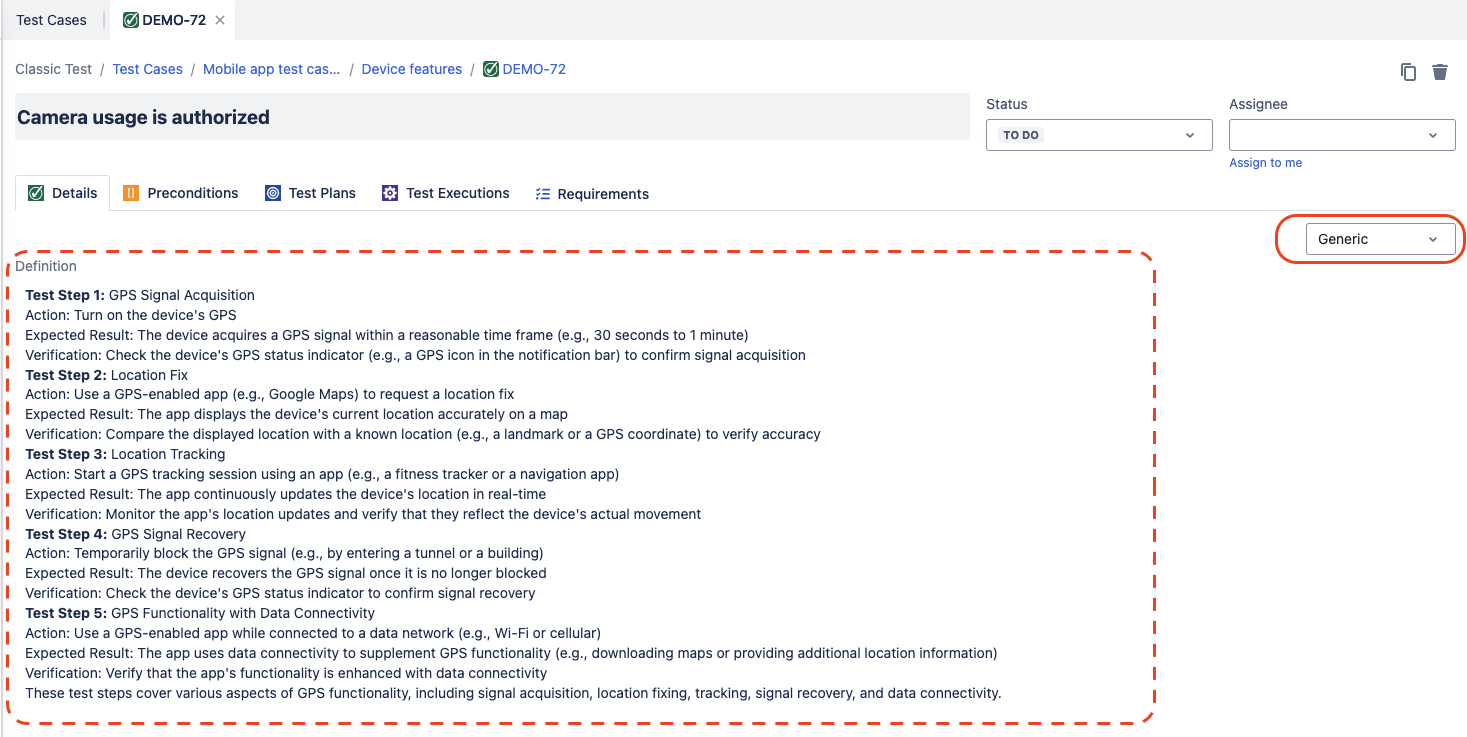 A Test case of this type is usually referred to as Generic tests. These test cases include only a description text field, making them simple and suitable for scenarios that don’t require complex details while still being effective for test execution.