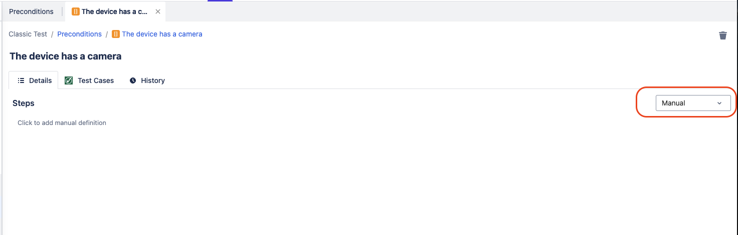 For Step and Unstructured types, the precondition details are provided in a simple rich text area. Here, you can add information about the prior conditions or setup required before starting the tests.
