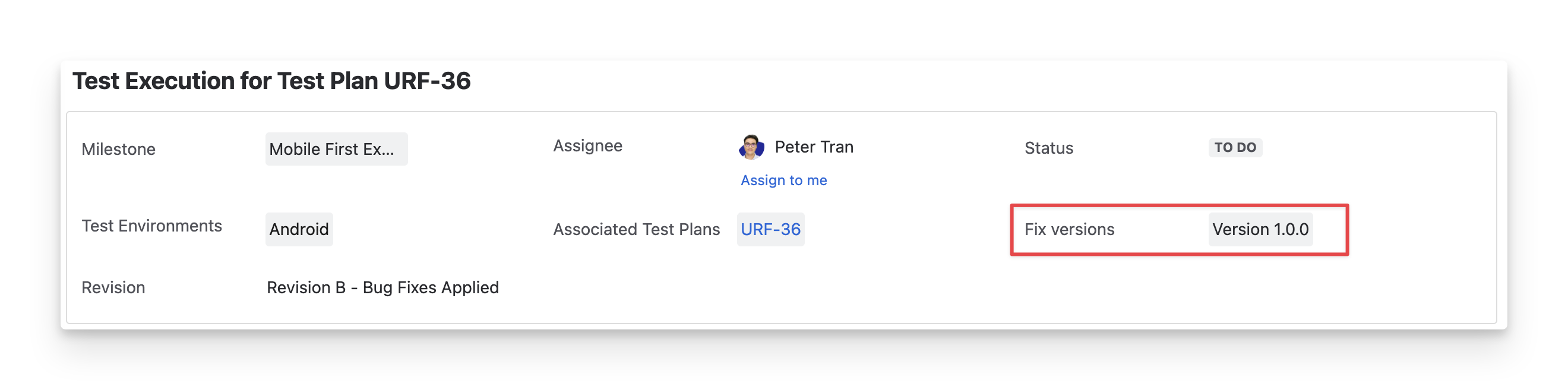 The Fix Version displays the Jira version in which the test execution is intended to be fixed or completed. This helps track which version or release the test execution is associated with.