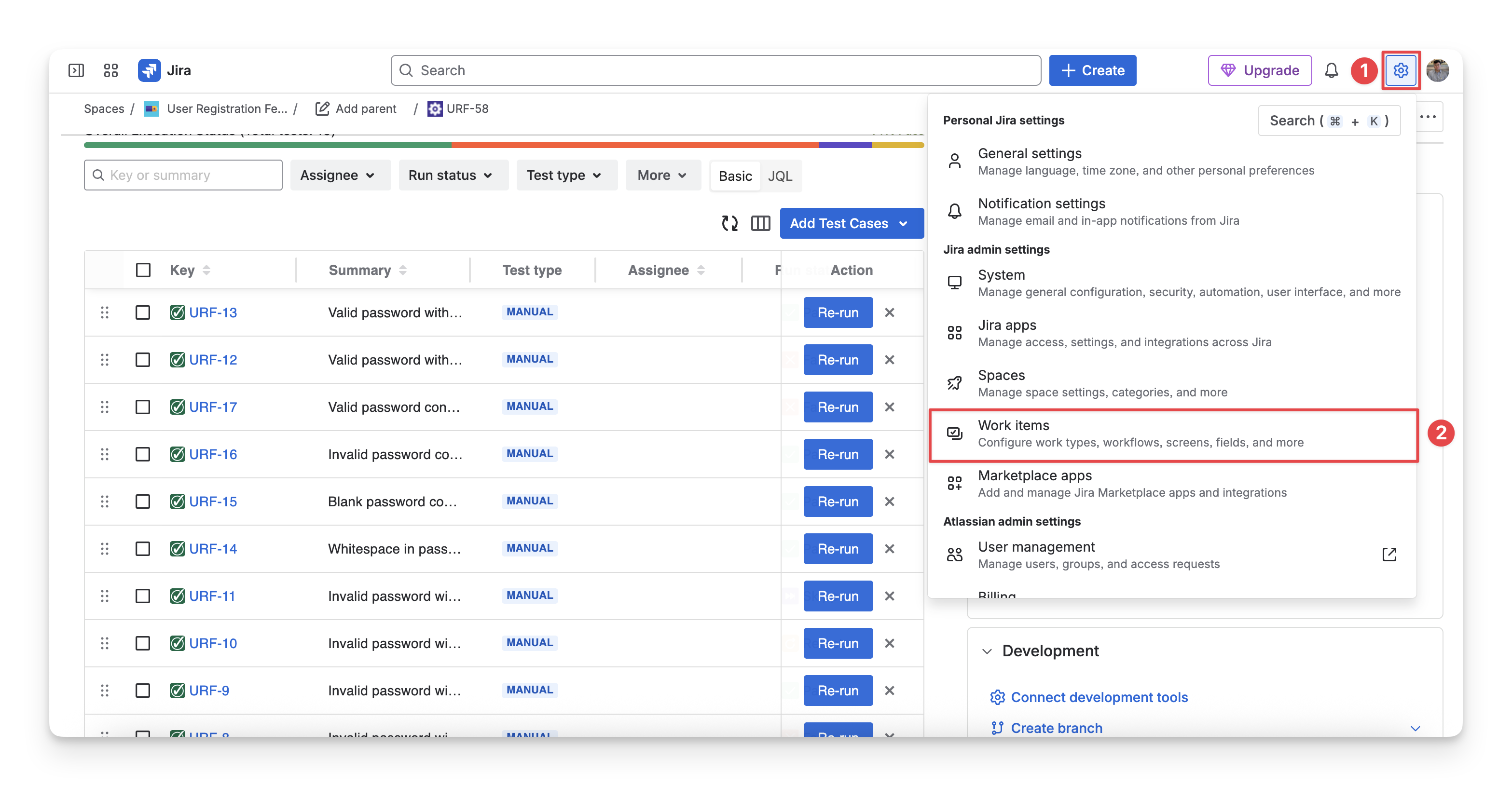 To change this status to match your team’s testing process, click on the dropdown and select the right Jira status.
