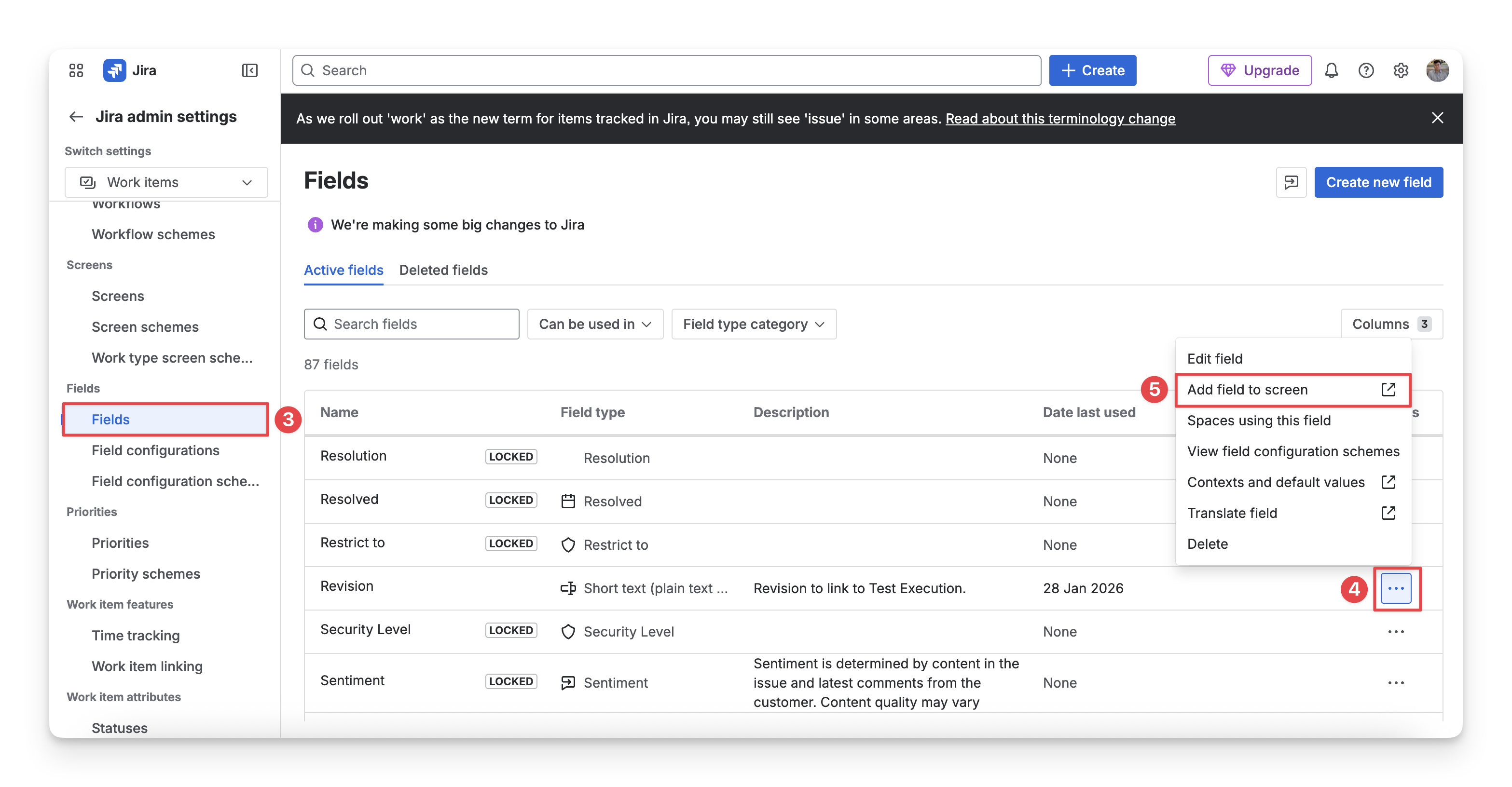 Select the “Add field to screen” option.