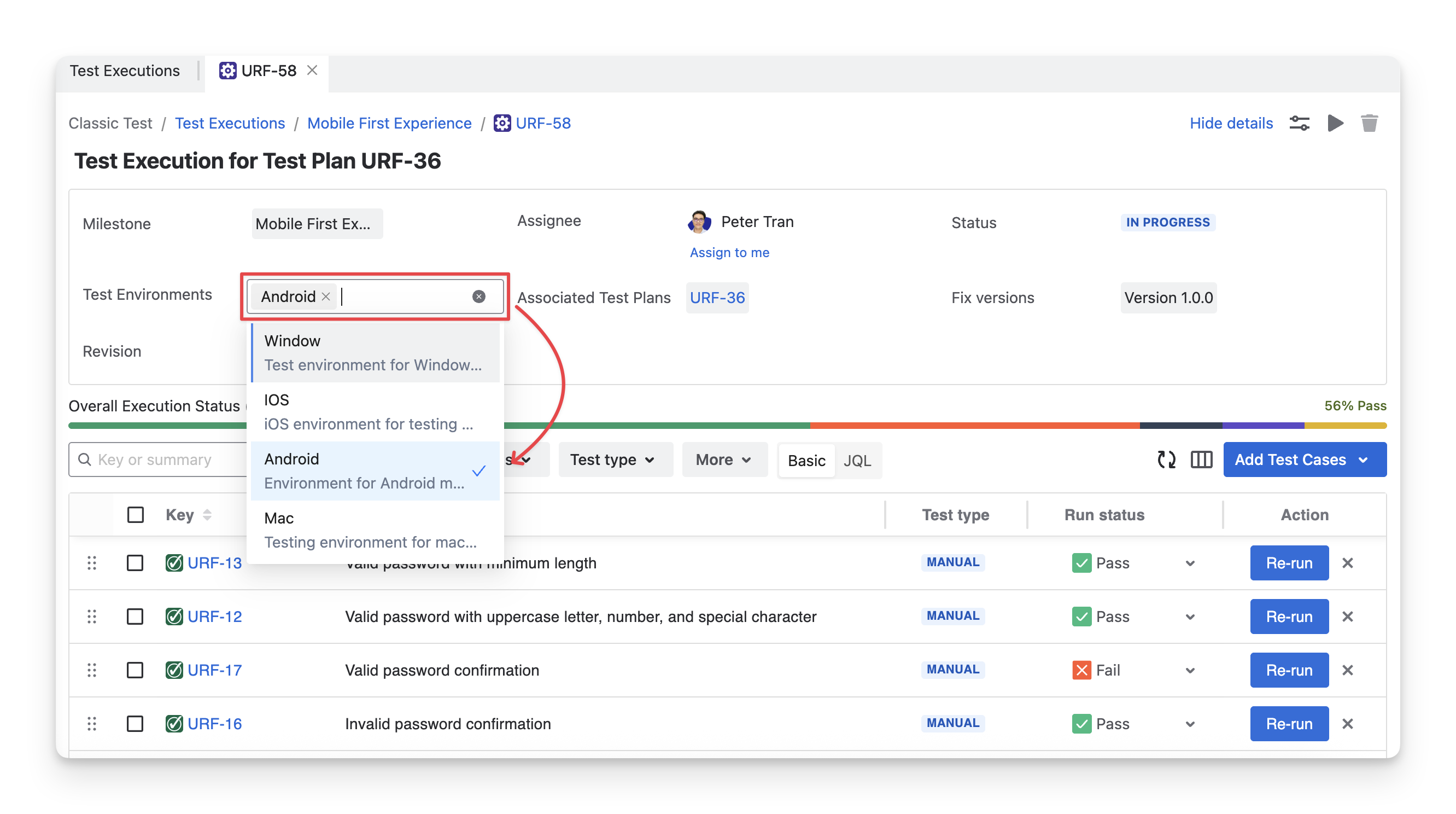 Select test cases you want to add to the current test execution. You can search for test cases by name, filter with fields, or use JQL.