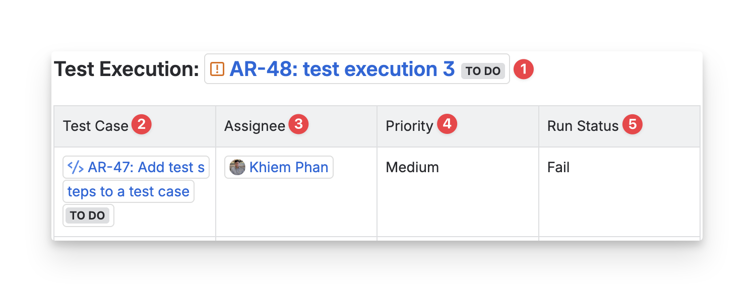 Test Case Key: the ID of each test case in the test execution, used to reference individual test cases and their results within the execution.