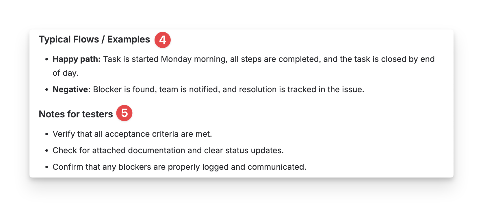Acceptance Criteria: the conditions that must be met for the test to be considered successful.