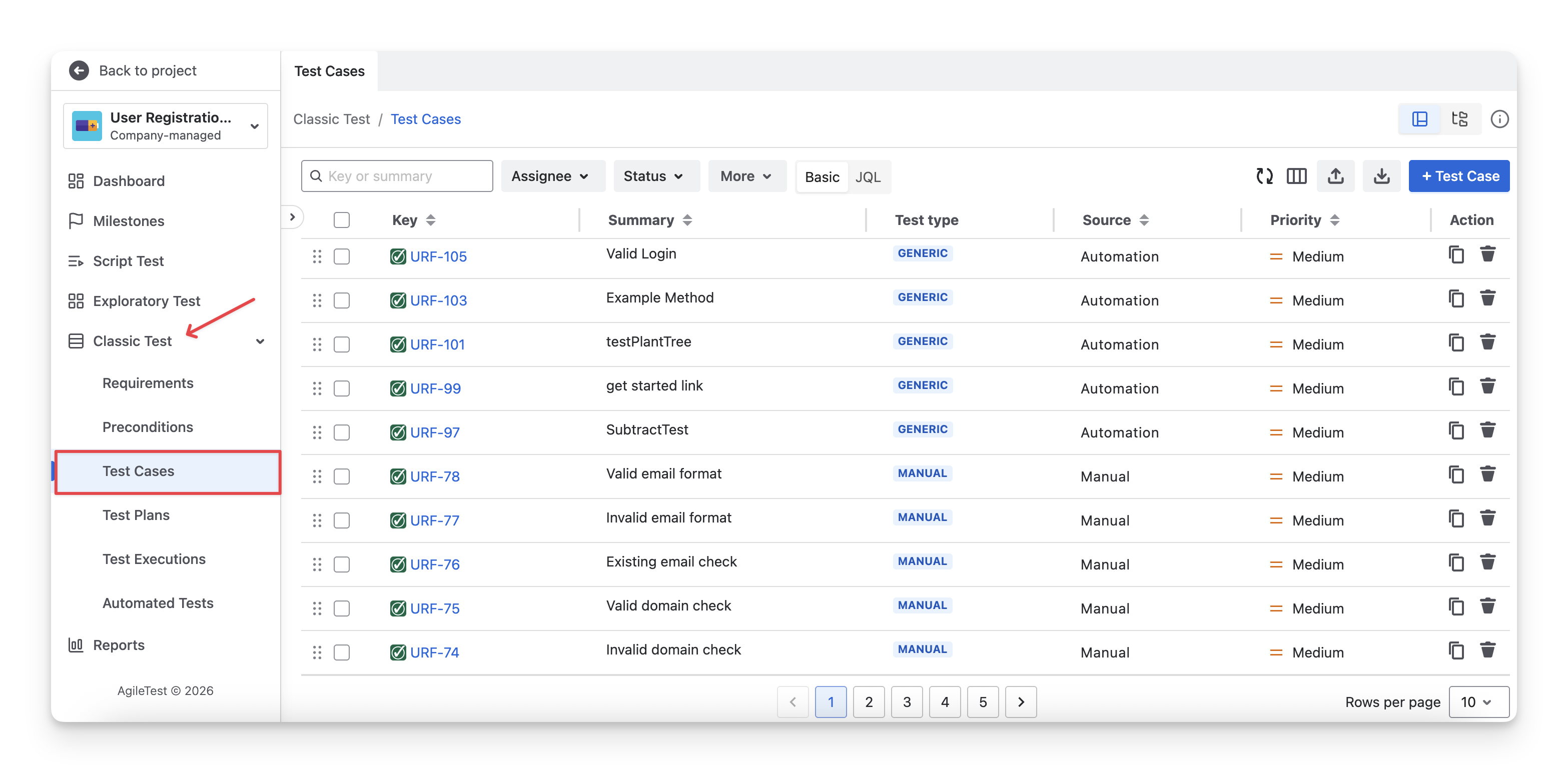 Navigate to the Classic Test section β select Test Cases. This is the section where you can create your test cases.