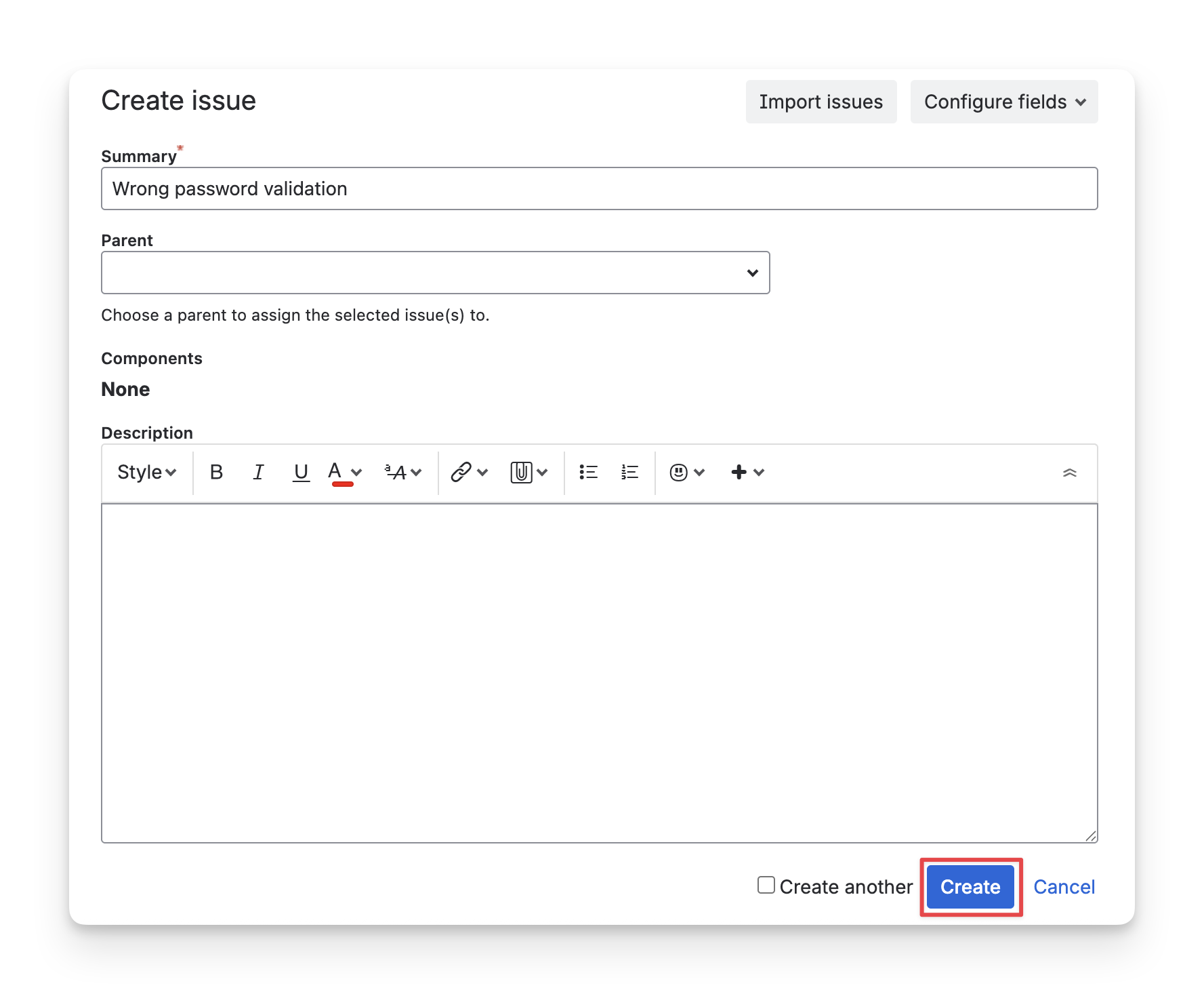 A dialog will appear. You can input your details for this test case. Once finished, click on the βCreateβ button.