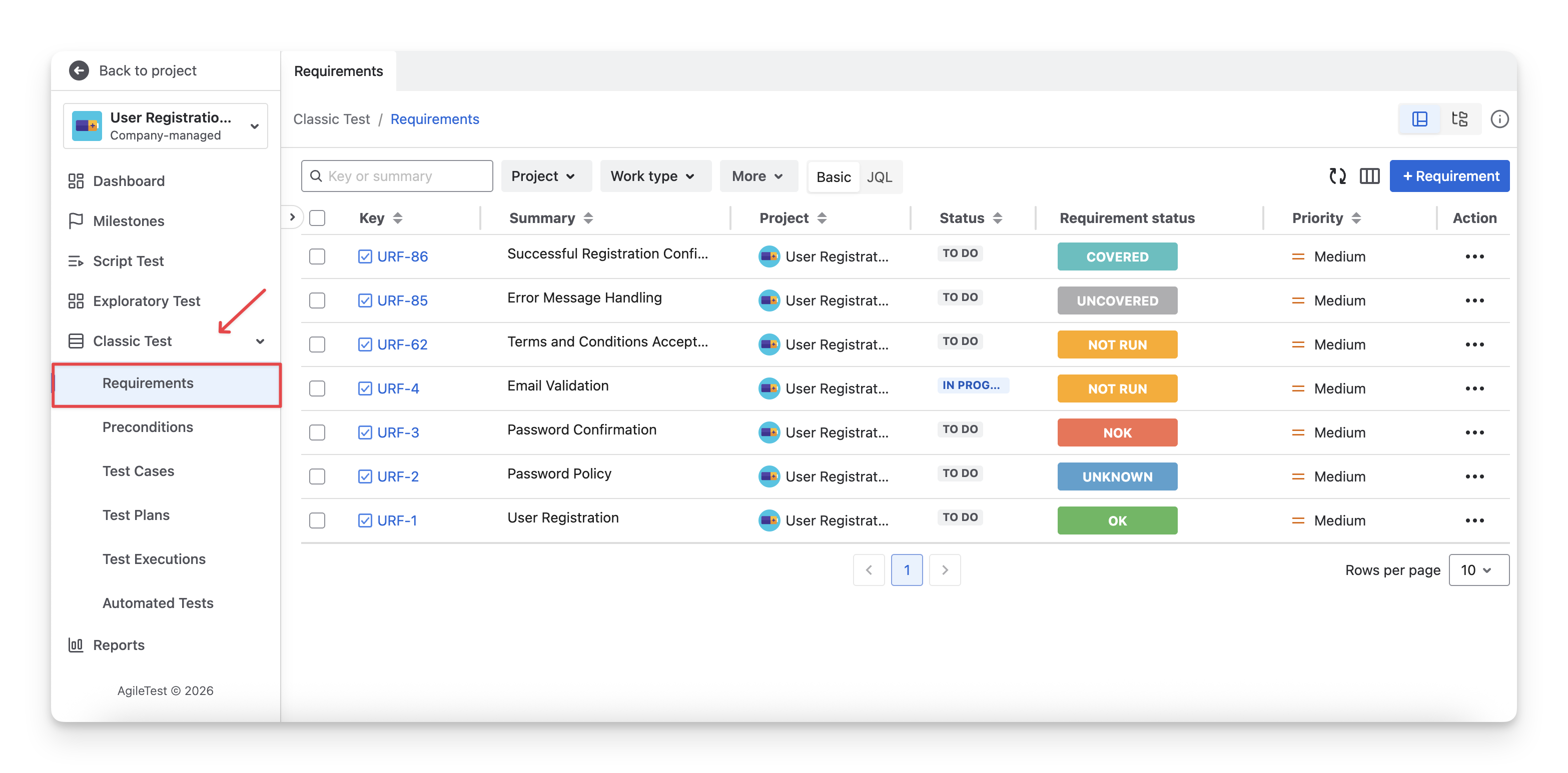You can go to the Classic Test section β Select Requirements to access the requirement screen.