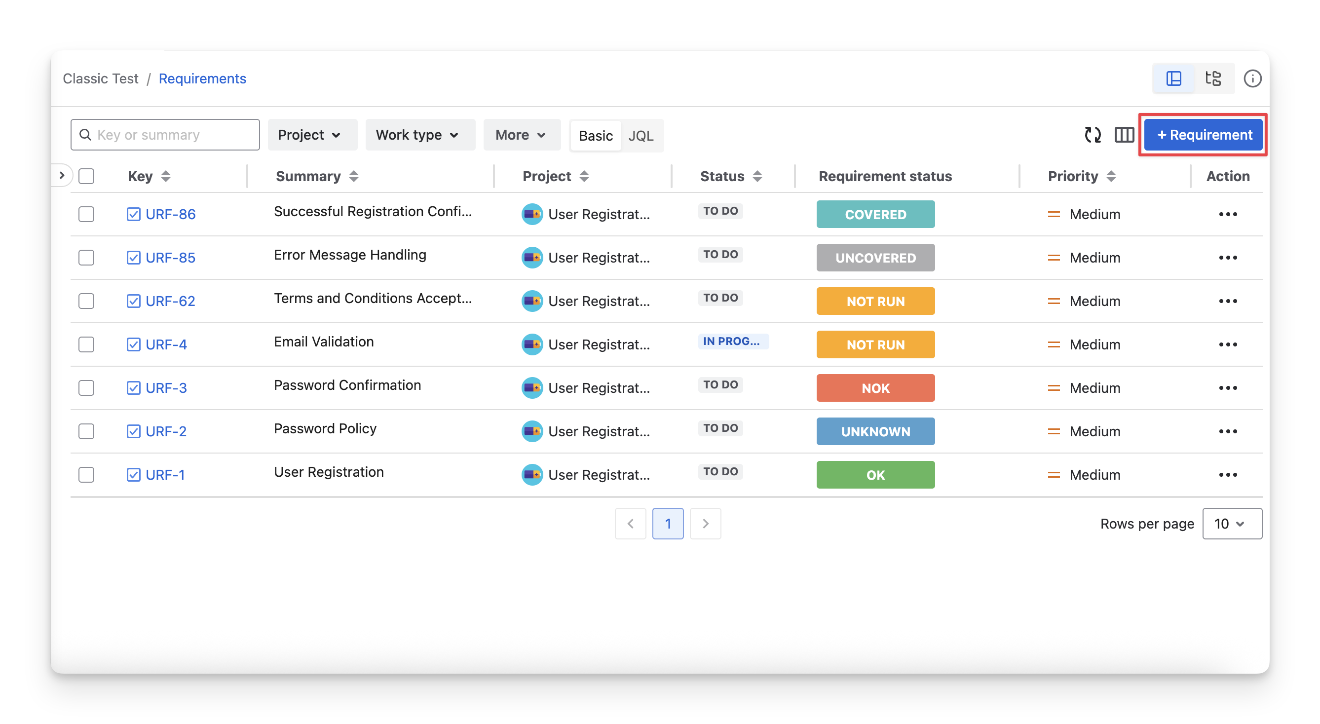 Then, you can click on the β+ Requirementβ button and fill in the details to create a requirement.