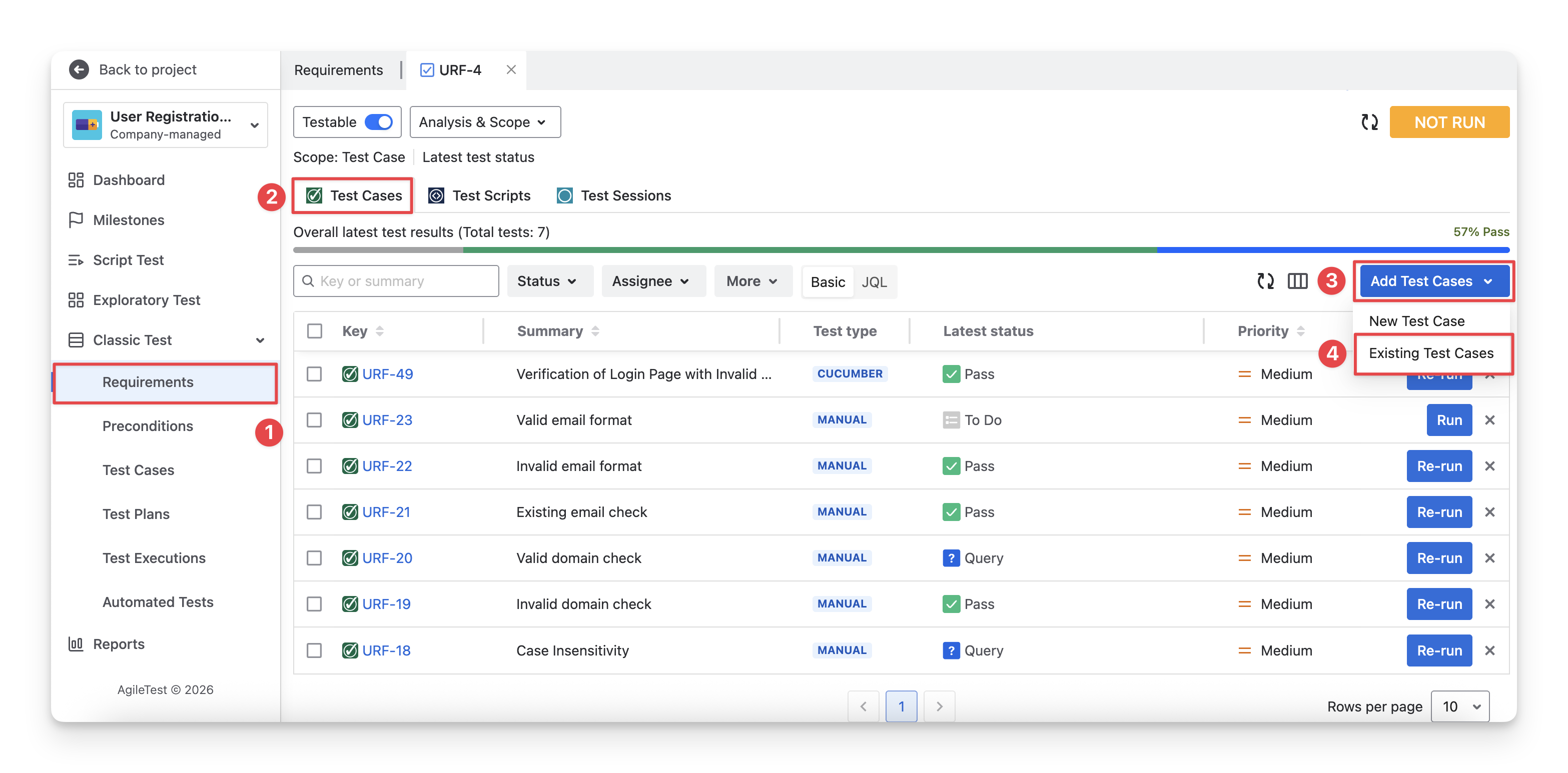 After creating your test cases, link them to your requirements. This establishes traceability, allowing you to monitor results in test reports. To do this, follow these steps: