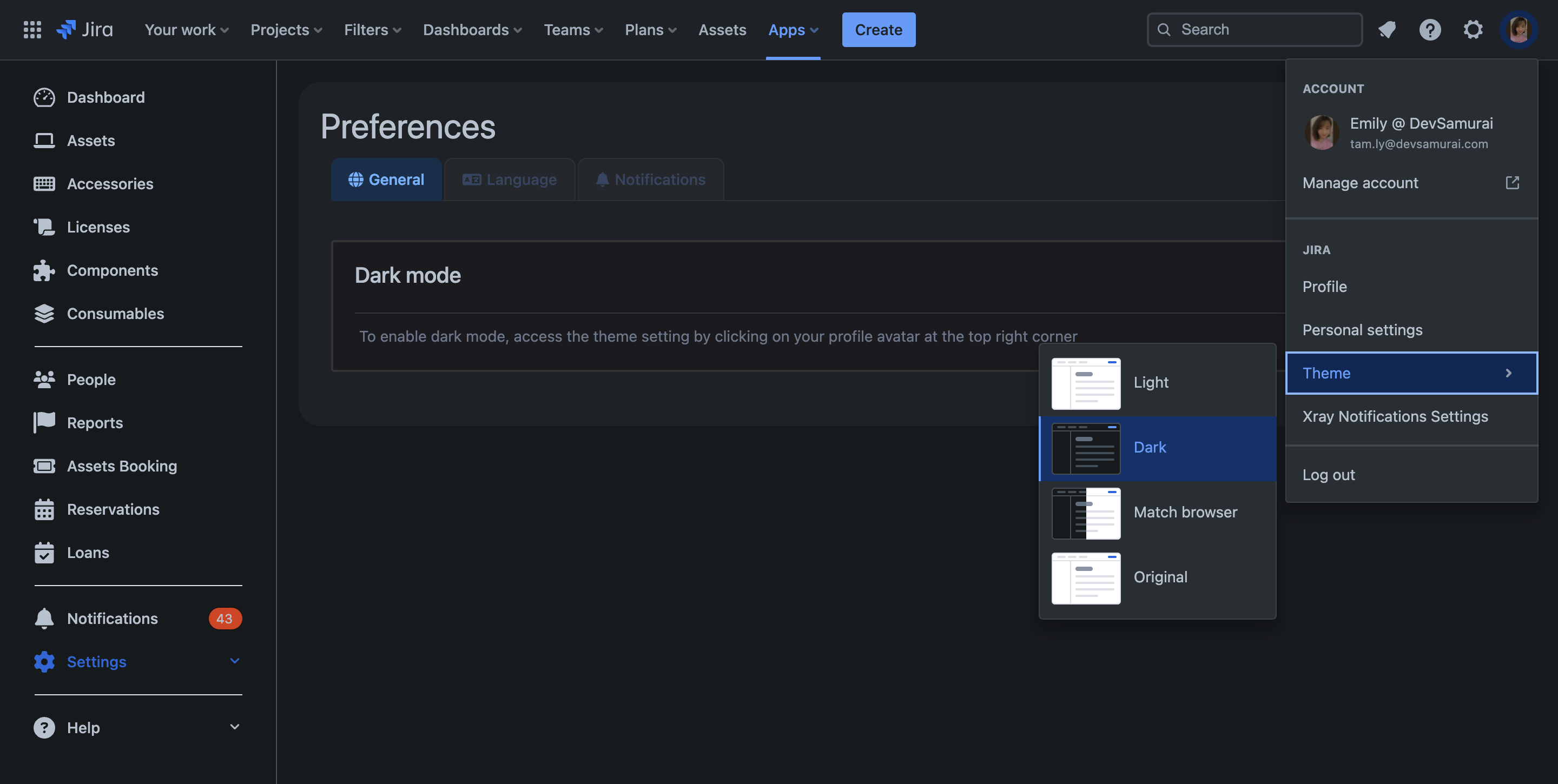 暗いテーマモード