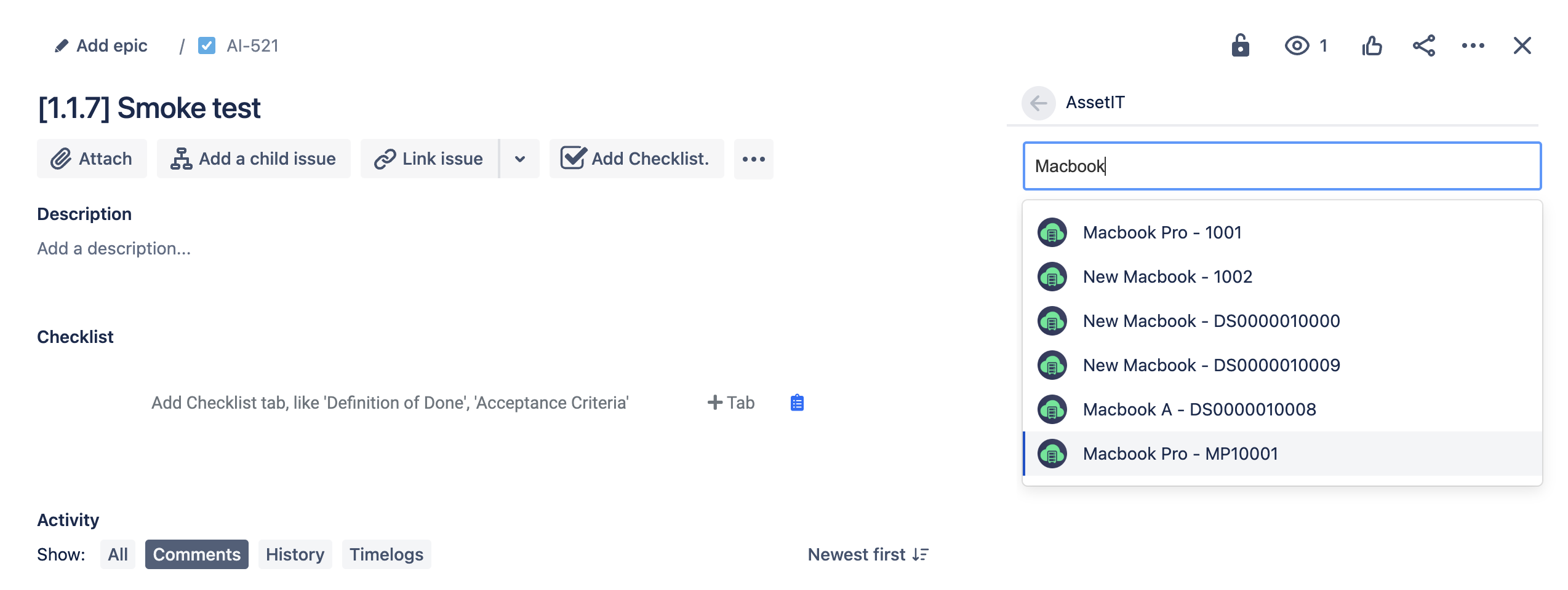 アセットをJiraチケットにリンクする機能