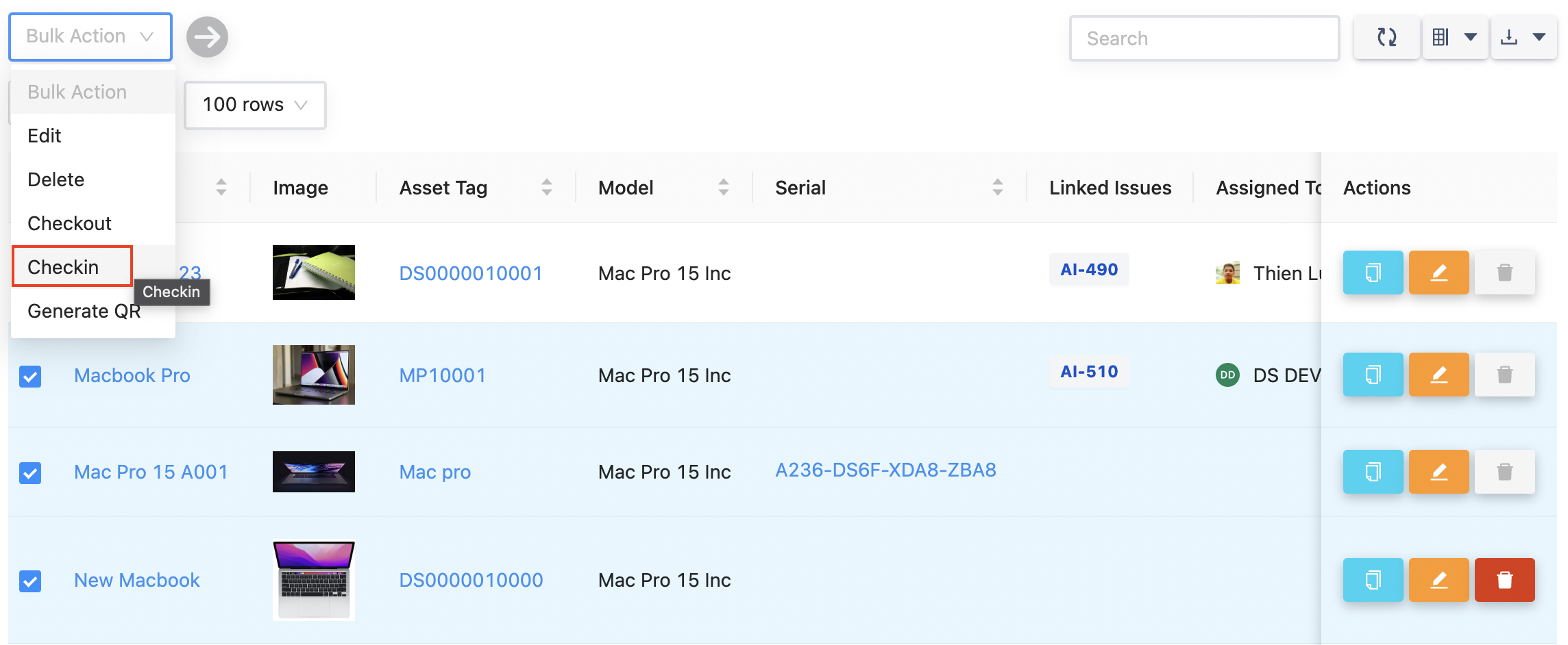 資産の一括チェックイン