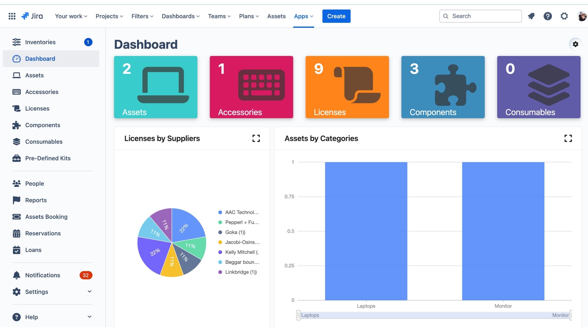 JIRA課題にリンクされている場合、資産はインベントリ順に並べ替えられます。