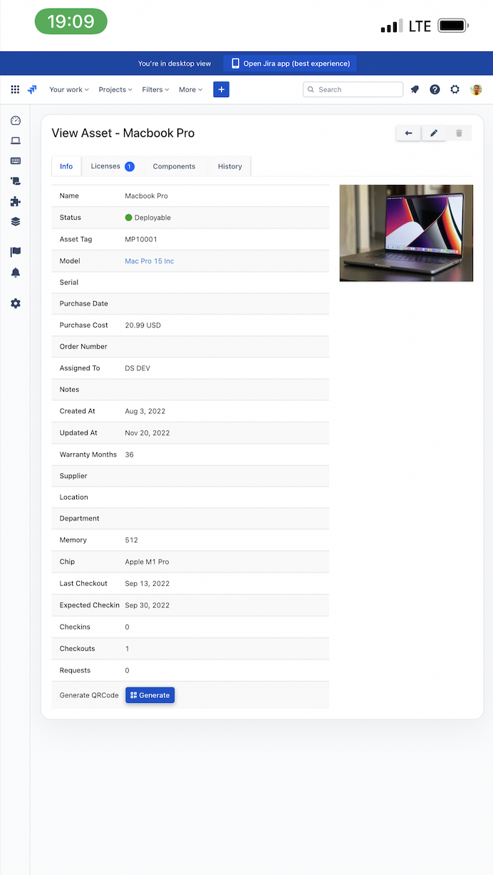 アセットの詳細画面で、下にスクロールして、生成ボタンをクリックします。