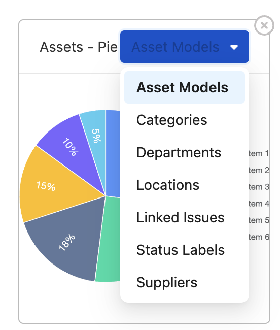 Select data types to display, such as Status Labels, Asset Models, etc. for Assets.