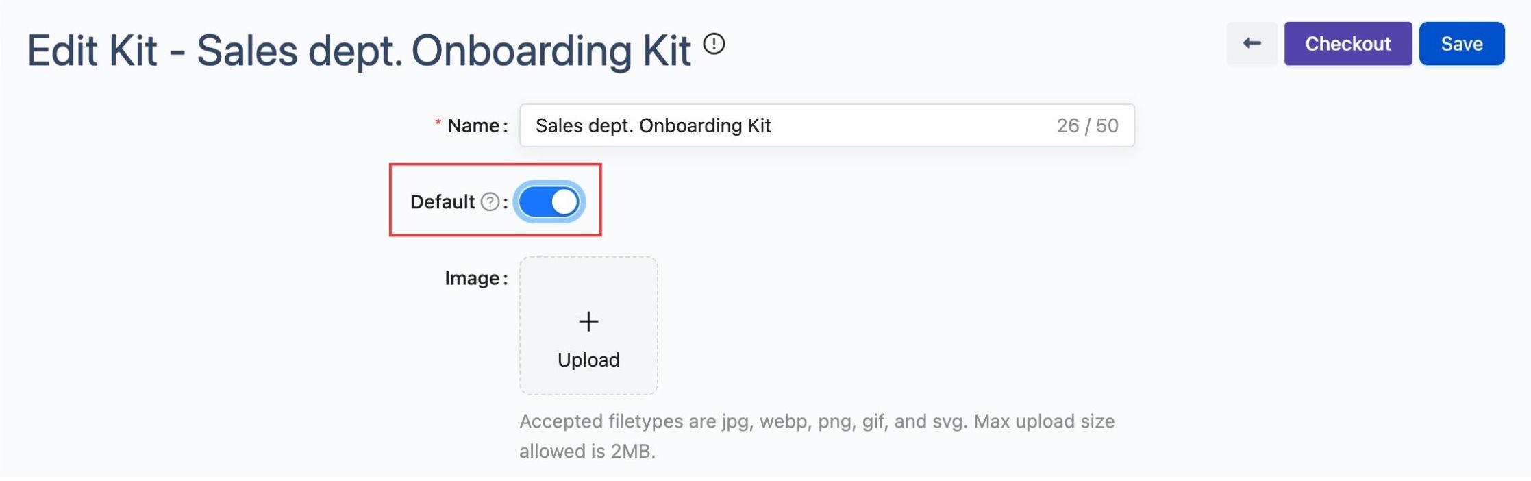 Turn on the Default button if you want to automatically check out the kit for newcomers. Make sure you have turned on the auto-checkout setting in General Settings.