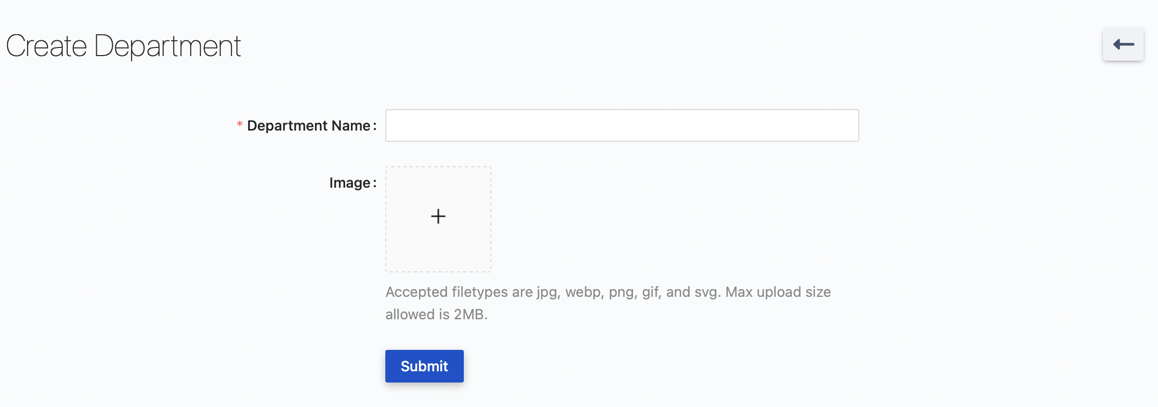 , fill in the department name, upload an image, and click Submit.Import Multiple: Click on