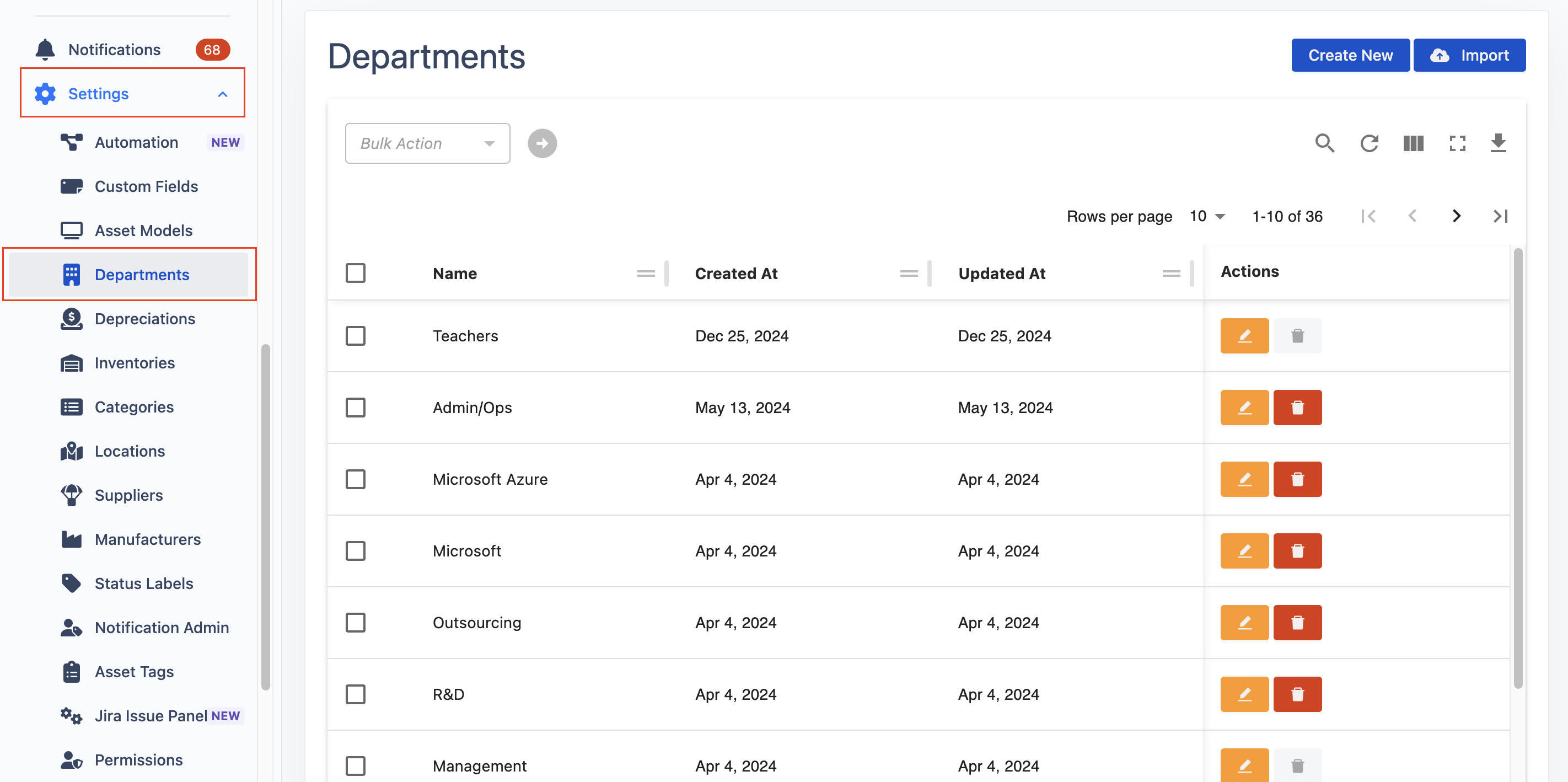 The Departments settings in AssetIT allow users to create and manage departments based on their organizational preferences. This feature provides flexibility in structuring asset management according to the company's internal hierarchy.