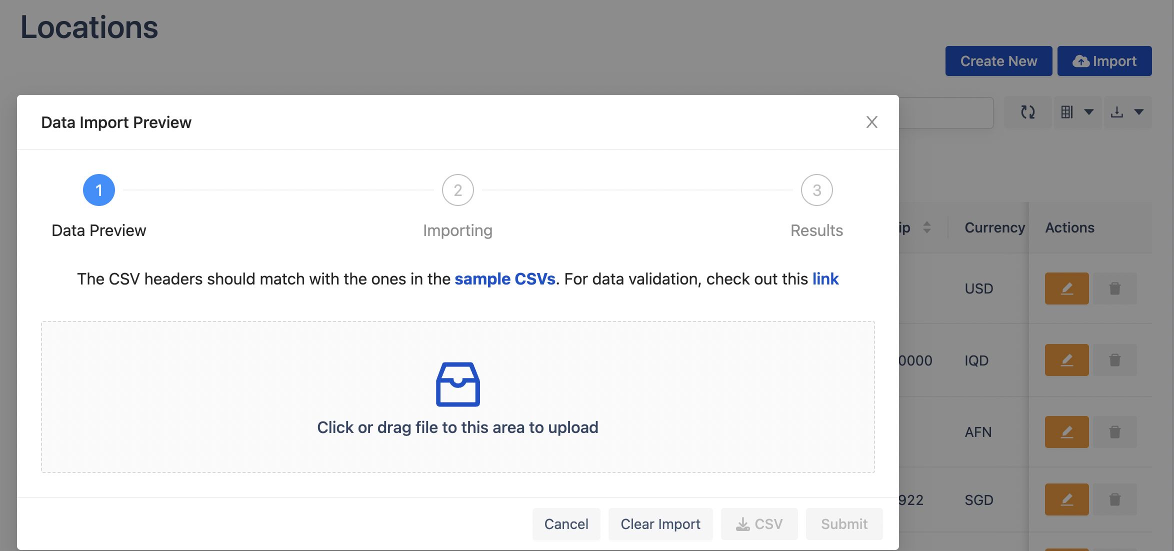 Import csv in Departments, Locations, Suppliers and Manufacturers