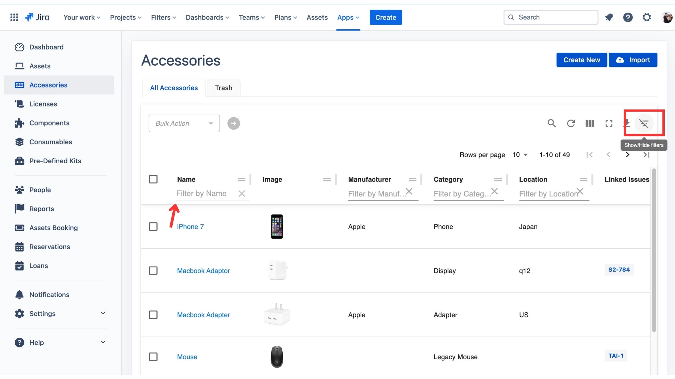 Advanced search and filtering capabilities for Assets and Accessories.