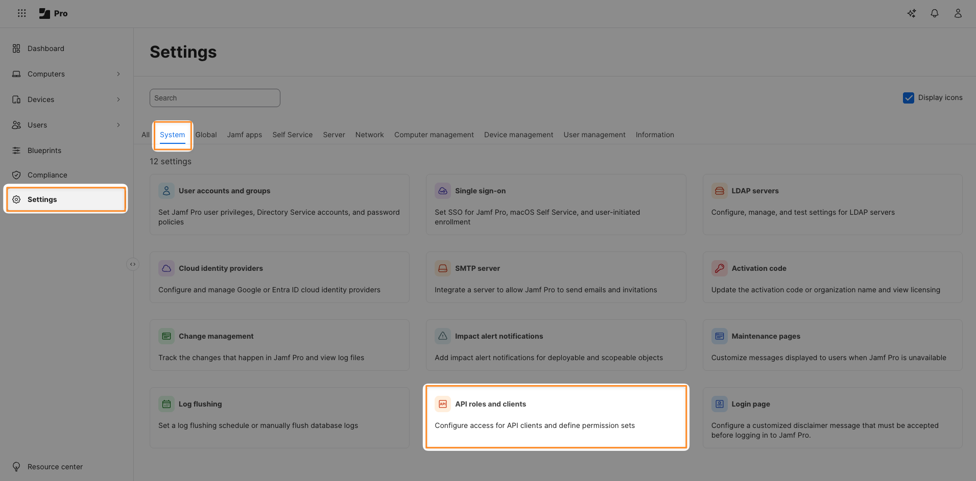 Follow these steps to generate the Client ID and Client Secret in your Jamf Pro environment: