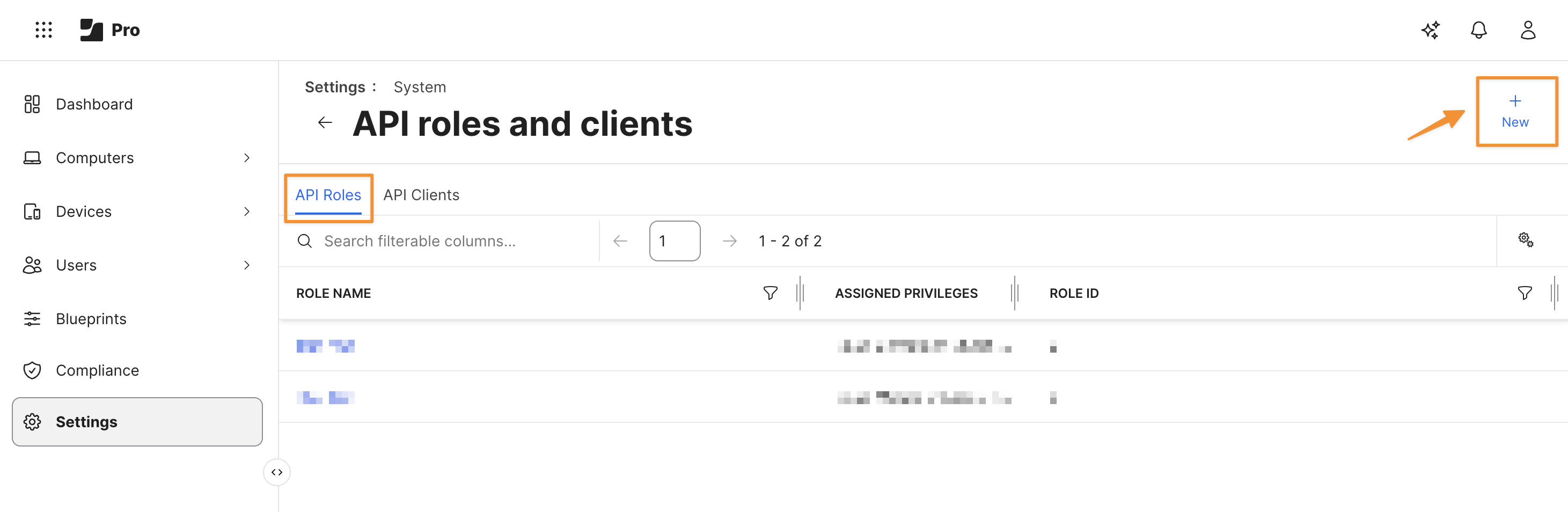 In the API Roles and Clients setup screen, locate the API Roles tab > Click New to create a new API role.