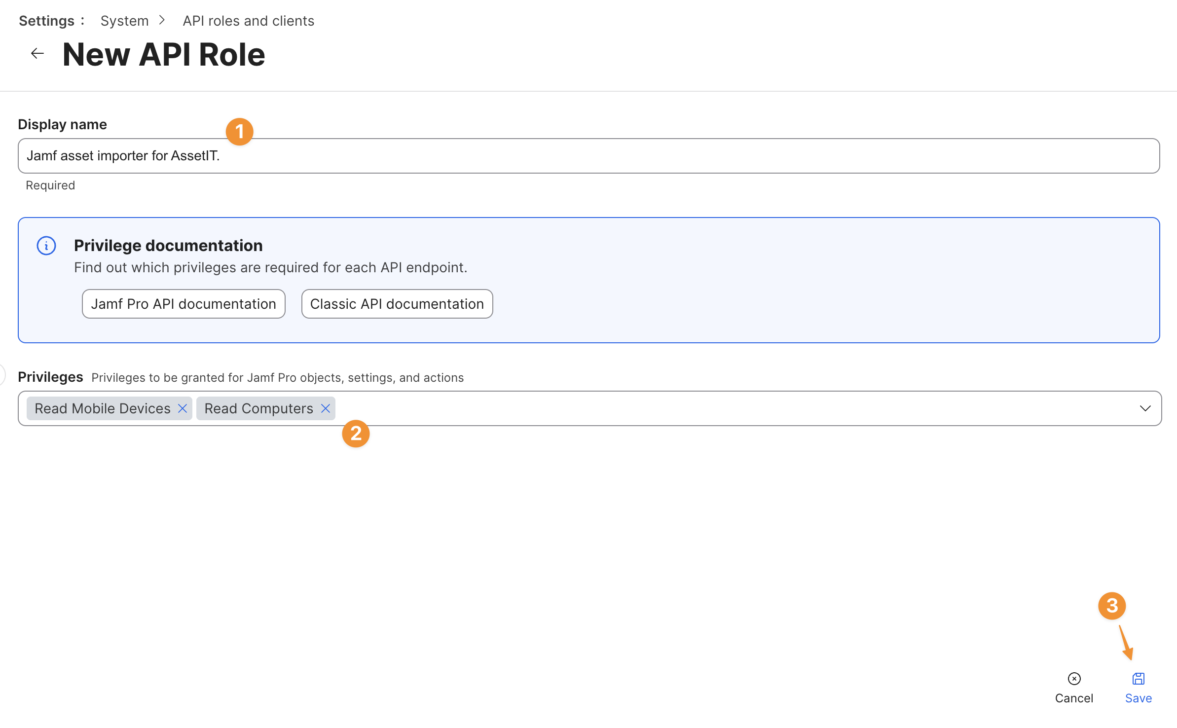 Display Name: Enter a name for the role (e.g., Jamf Asset Importer for AssetIT).