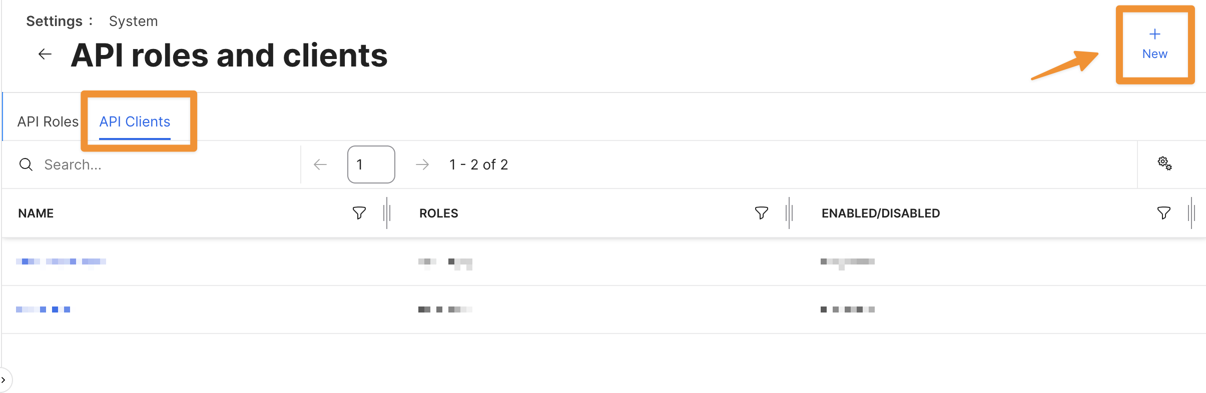 Navigate back to the API Roles and Clients screen. This time, click on the API Clients tab and click the New button to create a new API Client.