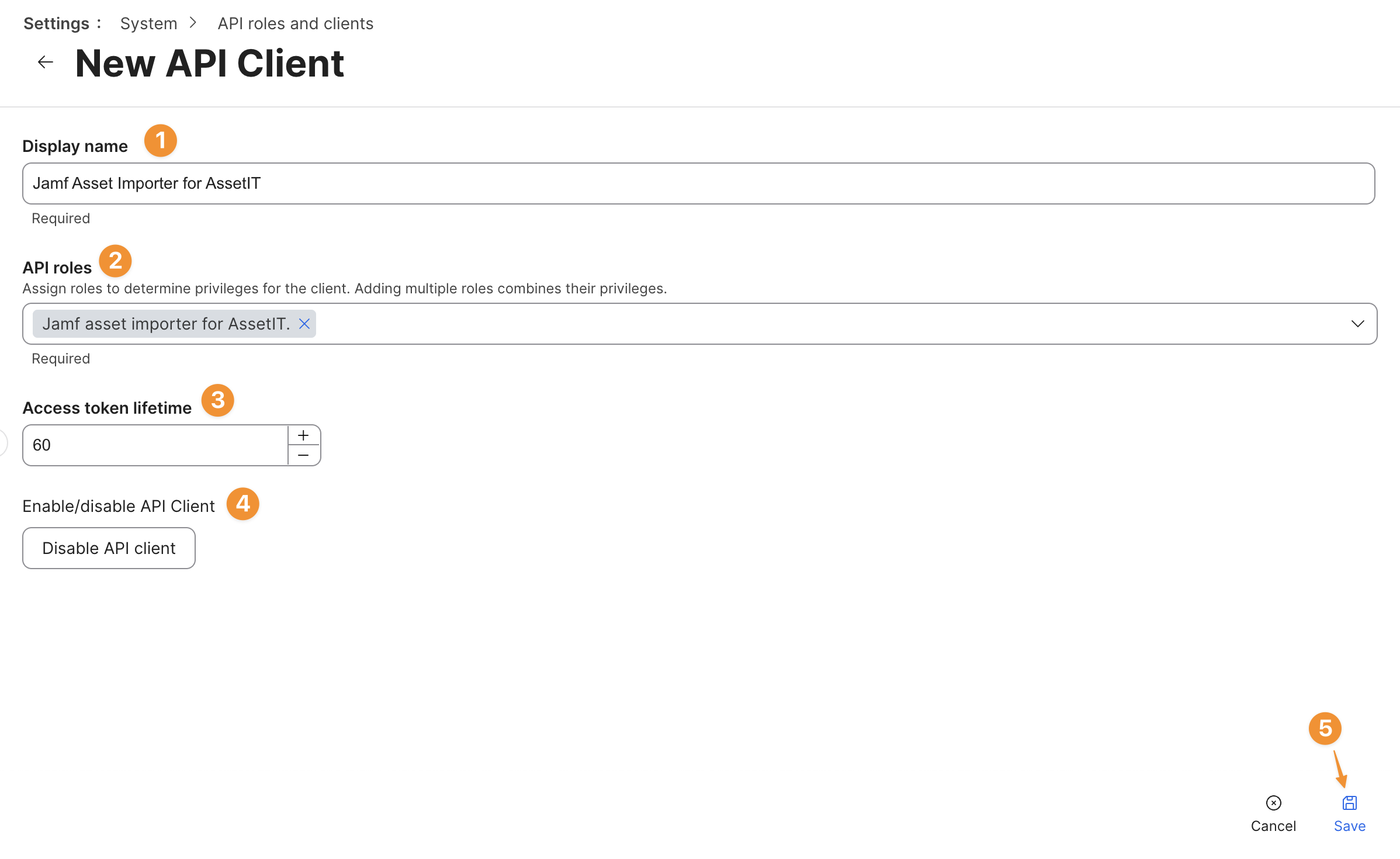 Set the Display Name for the API Client (e.g., Jamf Asset Importer for AssetIT).