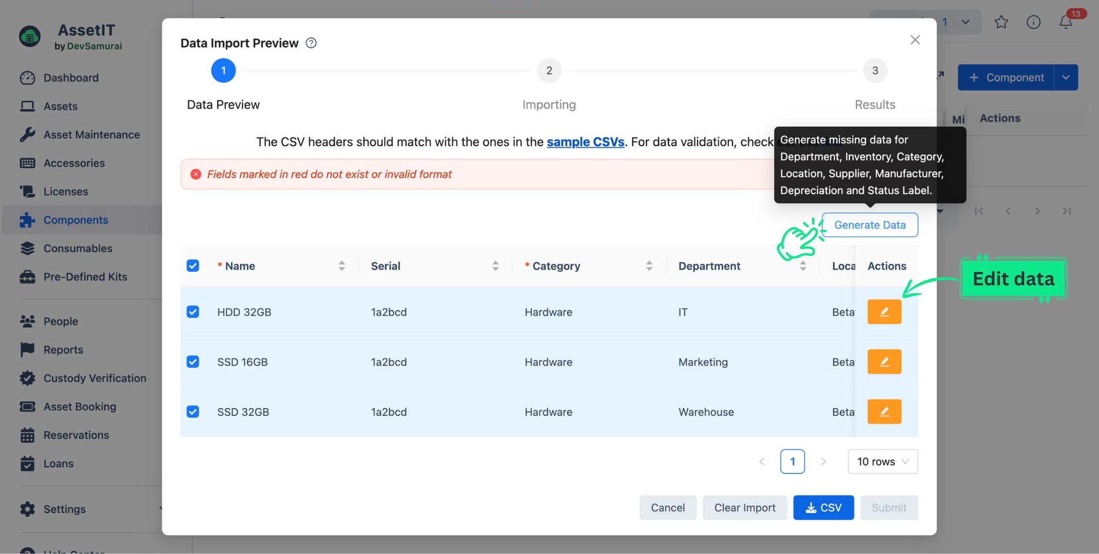 Components in AssetIT are individual items that make up a larger asset. Examples include hardware components like Hard Disk Drives (HDDs), RAM, processors, or any other parts that are integral to an asset’s functionality.