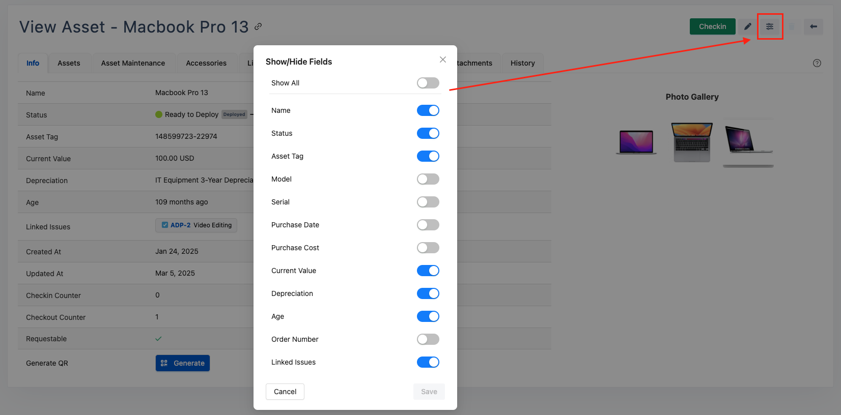 Gallery: View or add illustrations of the asset. Please adhere to the limit of 6 images per asset, with a maximum upload size of 2MB per image.