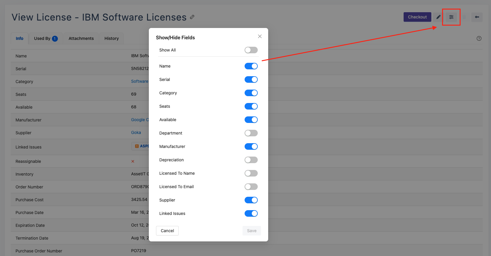 Used By: Provides a detailed overview of which users or assets have checked out the license.