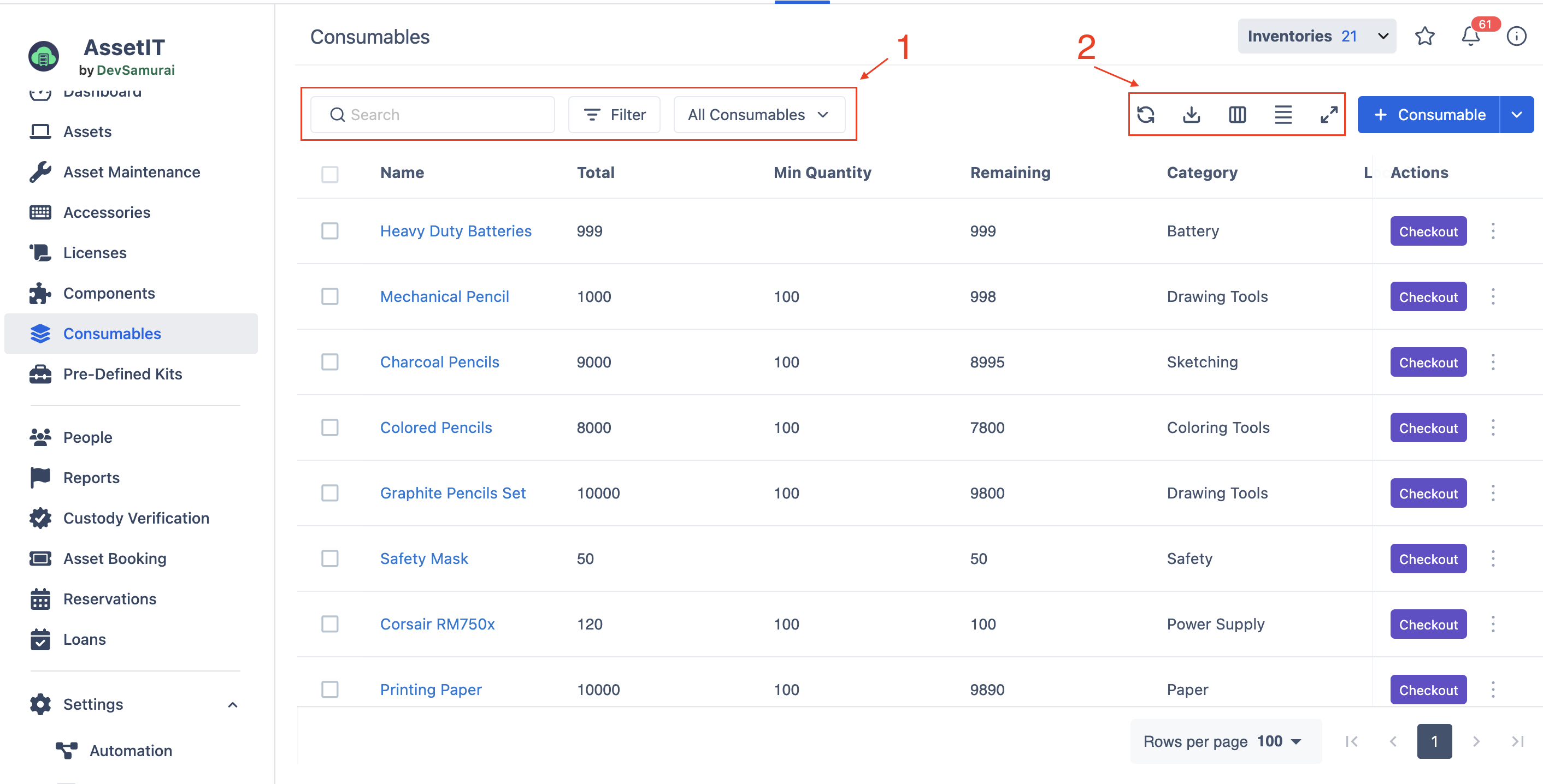 Search, filter, and organize your consumable list in AssetIT.