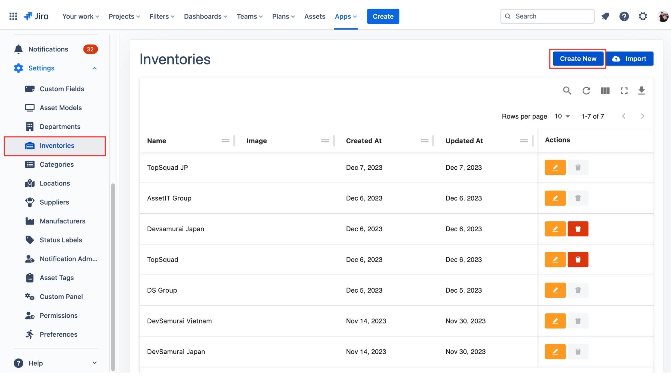 Enter the details of the new inventory (e.g., name: DevSamurai Vietnam).