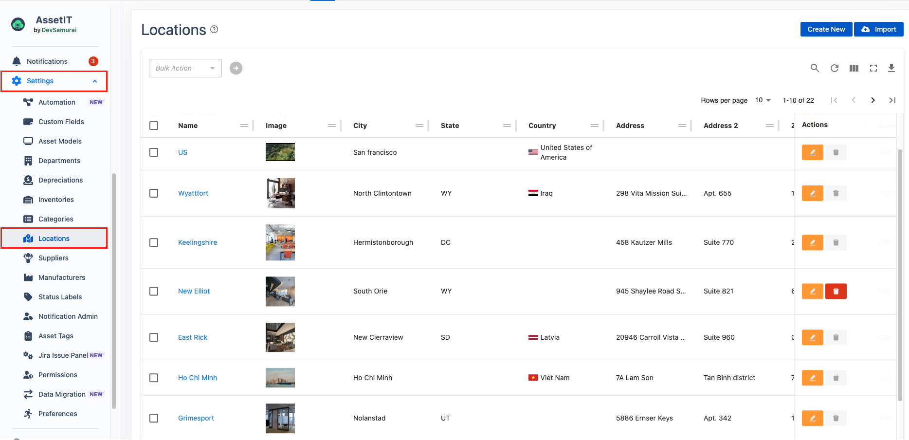 Locations in AssetIT help organizations effectively manage and track their physical assets by assigning them to specific locations. This feature allows users to create, manage, and categorize locations where assets, accessories, licenses, components, and consumables are stored or utilized.