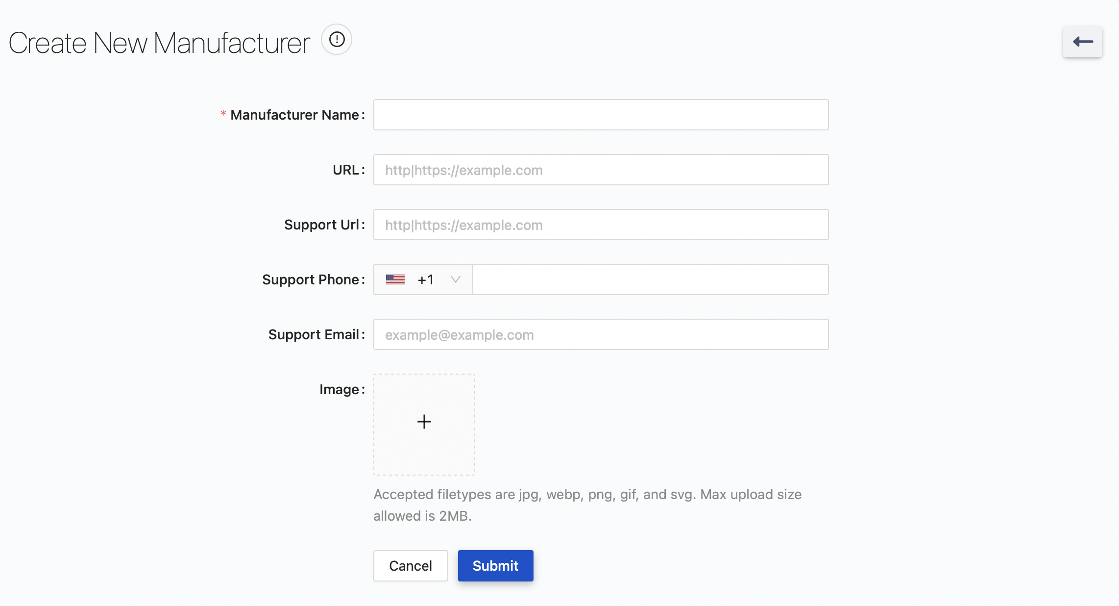 , fill in the manufacturer name, upload an image, and click Submit.Import Multiple: Click on