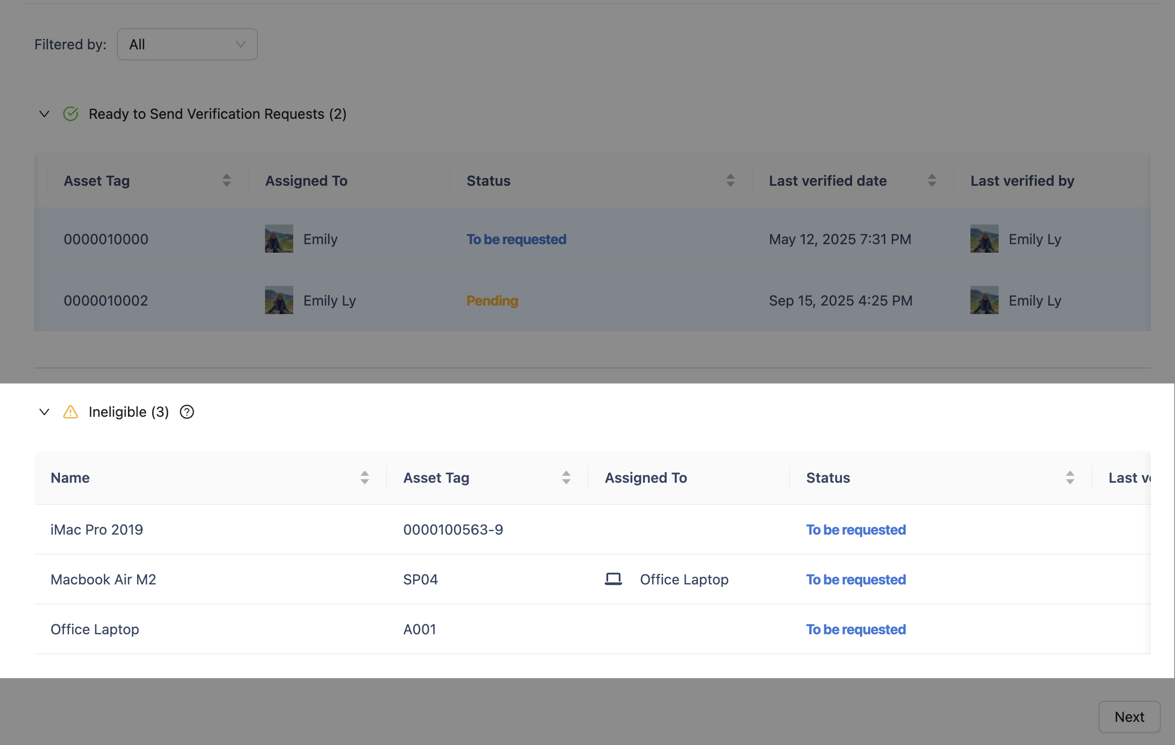 ✔️ Only assets assigned to users can be verified.