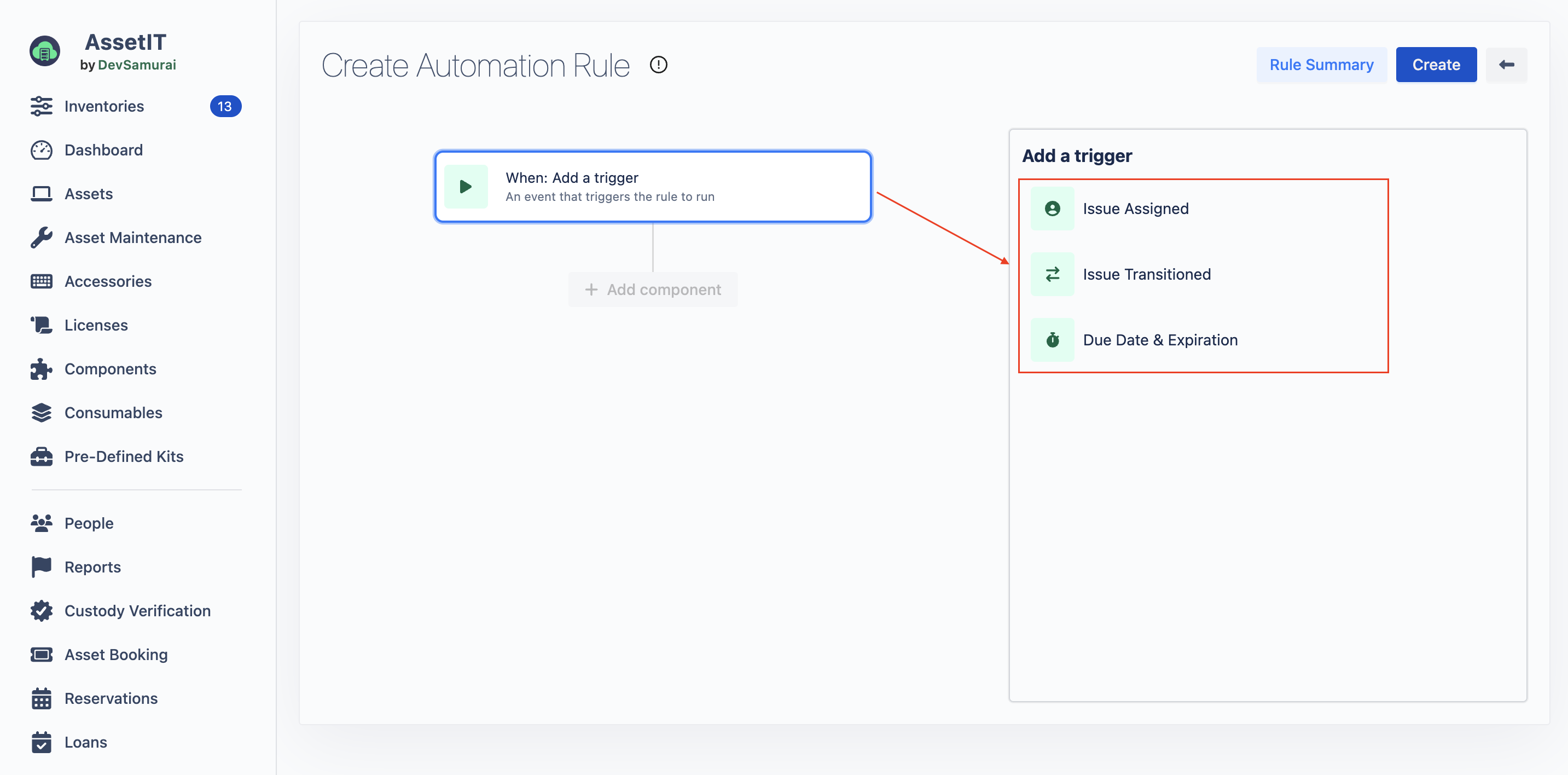 A trigger is an event that starts the automation process. It defines the conditions under which an automation rule is activated. For instance, triggers can activate when an asset is checked out, when an issue is assigned, or when a scheduled due date approaches. By defining these events, you can automate responses and streamline workflows efficiently.
