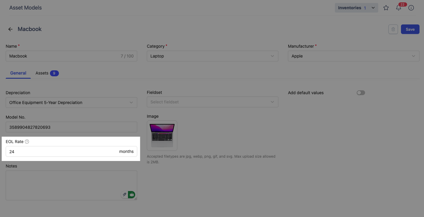 EOL dates are now calculated automatically from the rate defined in the asset model. This ensures assets follow consistent lifecycle rules and removes the need to set EOL dates manually for each one.