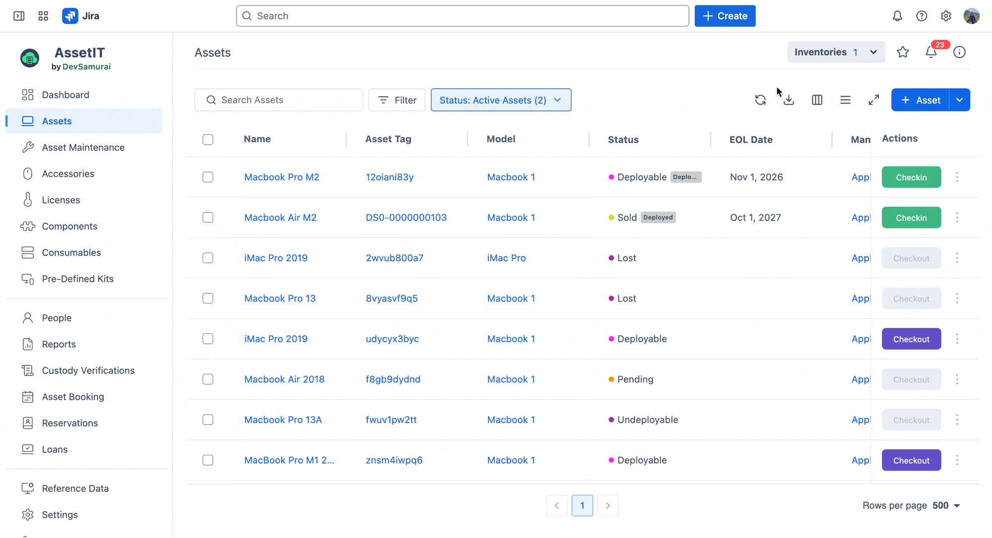 A new filter at the Asset List lets you view assets based on their statuses, whether they are ready to checkout, or archived due to supervision.
