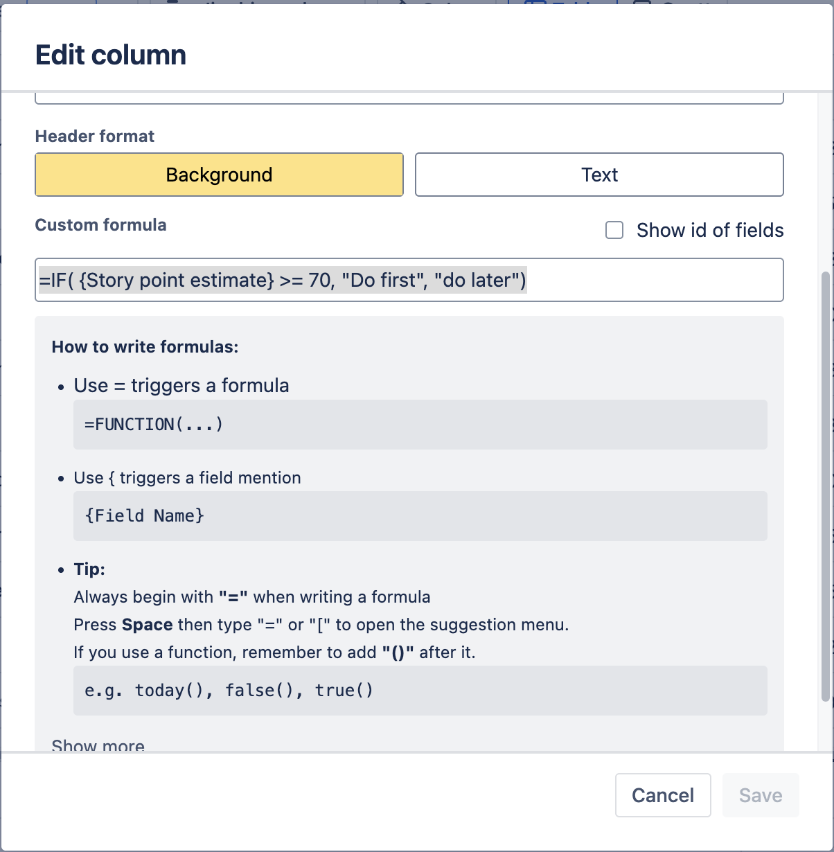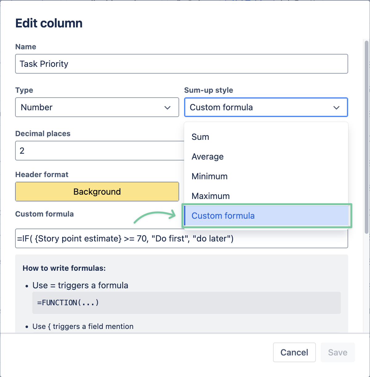 In the Smart column of GanttTable version 3.0.0, we’ve decided to take an extra step with the Custom formula. With this new feature, users can quickly create a unique column and field without having to make a dedicated custom Jira field in their instances.