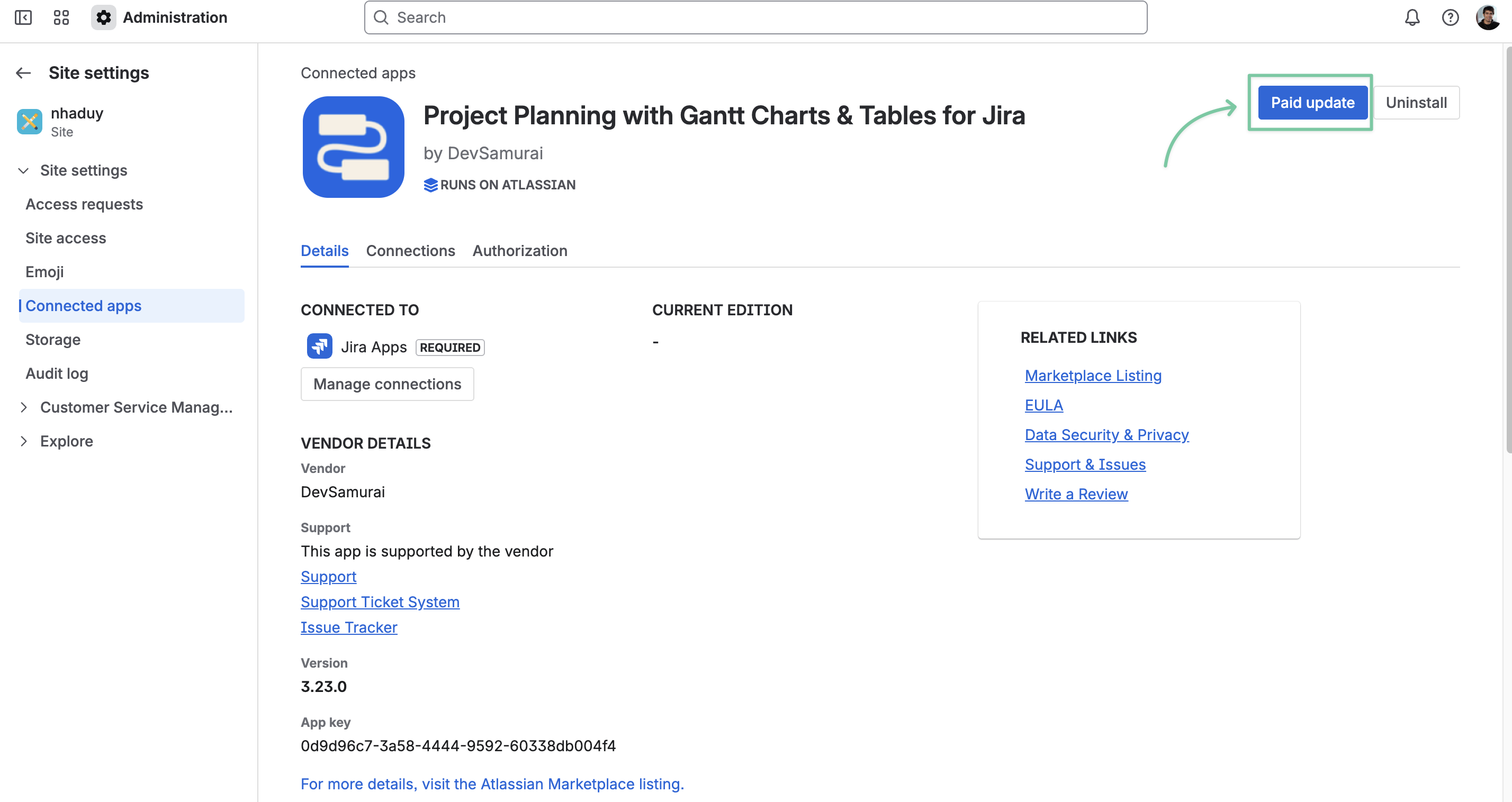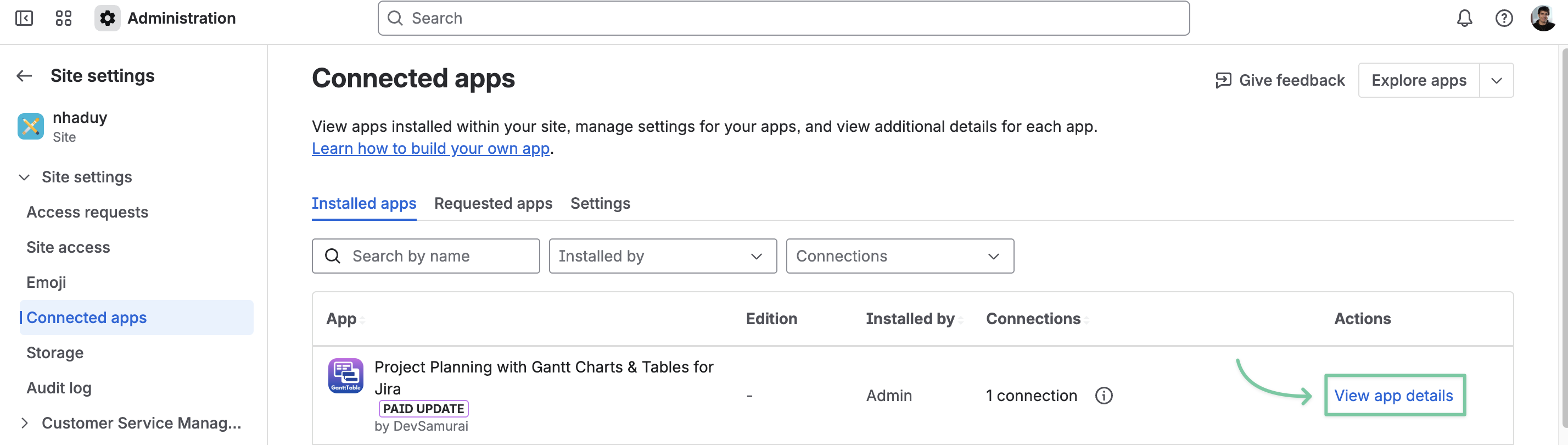 Locate Project Planning with Gantt Charts & Tables for Jira in the list of installed apps and click View app details.