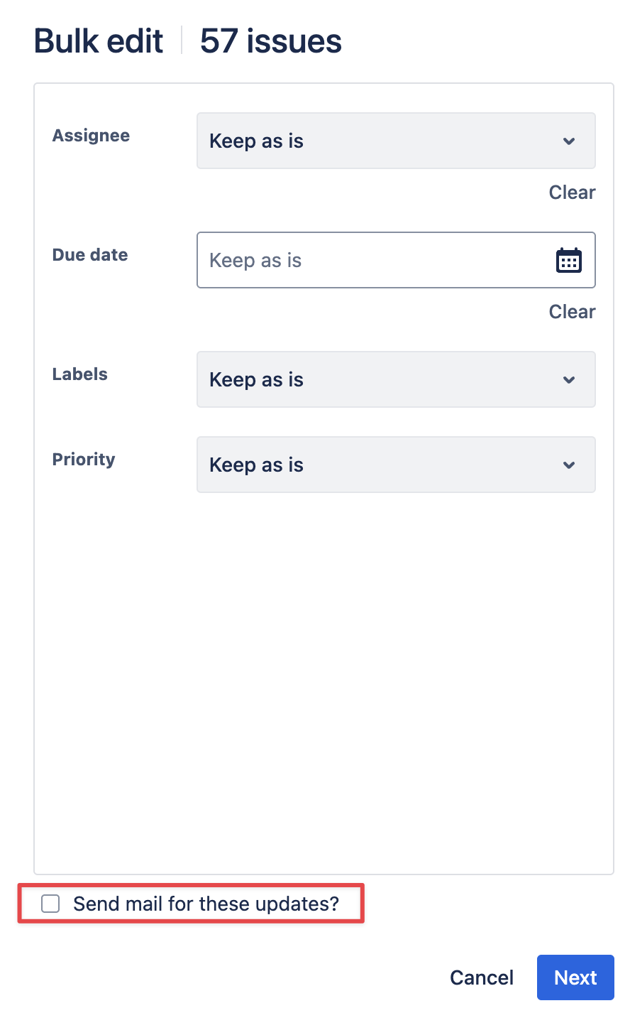 Send mails for these updates: when checked, these changes to the issues will notify their assignees via email.