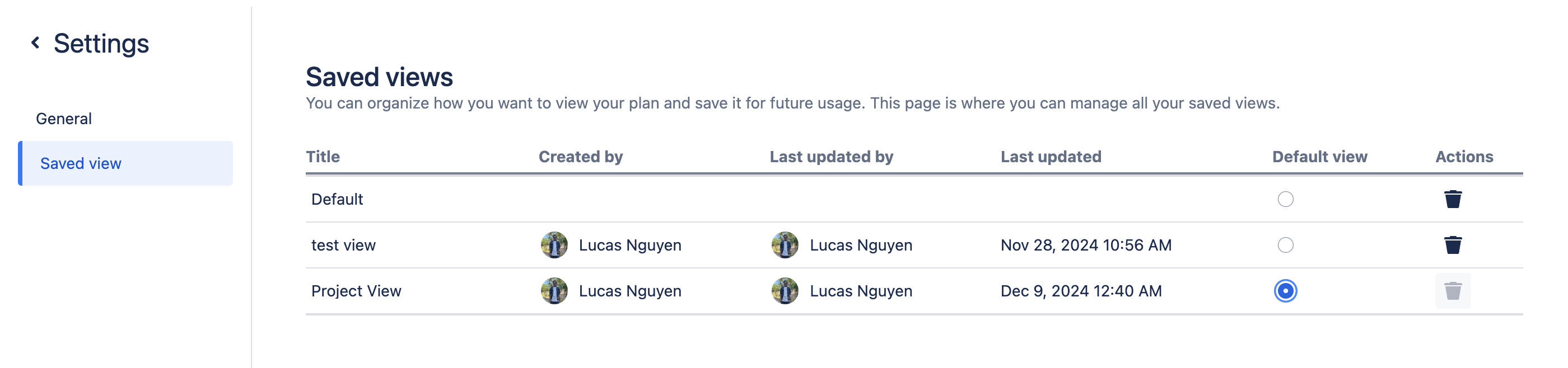 In the settings, you can make a custom view as a default one for every member of your team. Or, you can delete a view from the list.