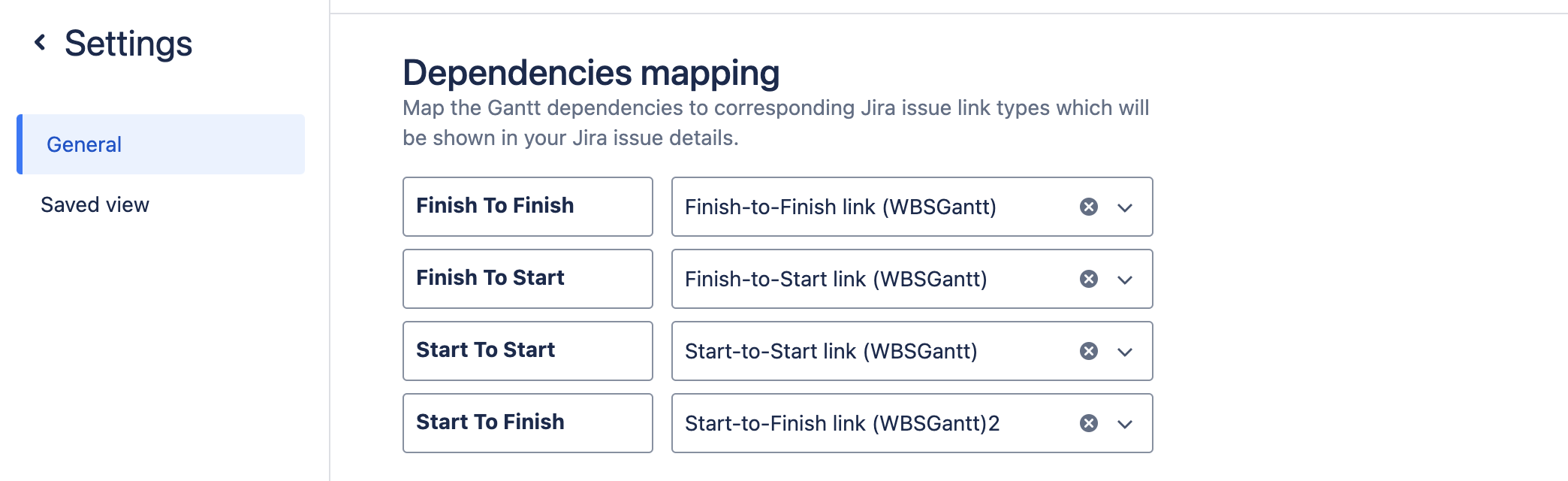 This allows you to map the Gantt dependencies between tasks which will be visualized on the Gantt chart, integrating task dependencies with the corresponding Jira issue link types.