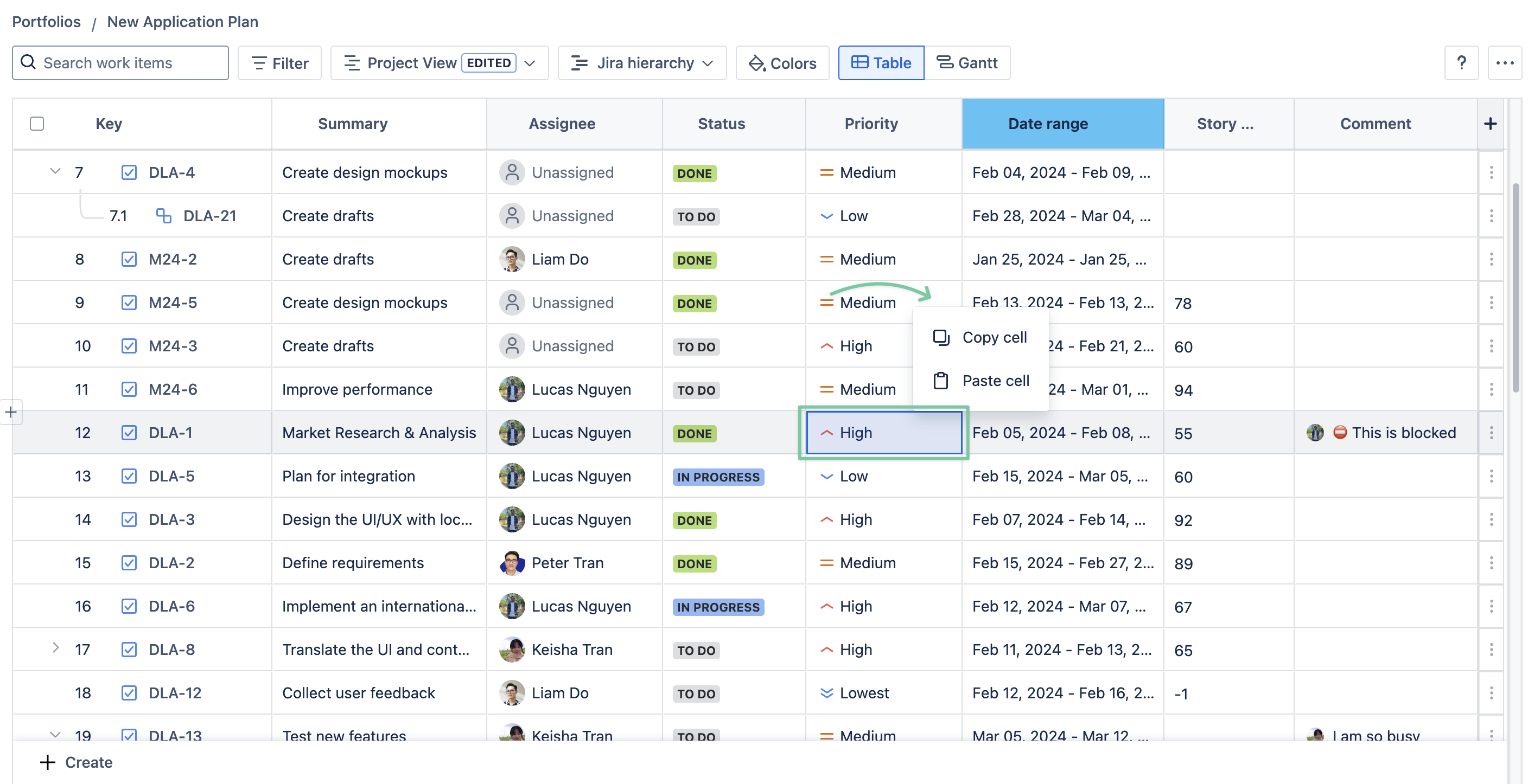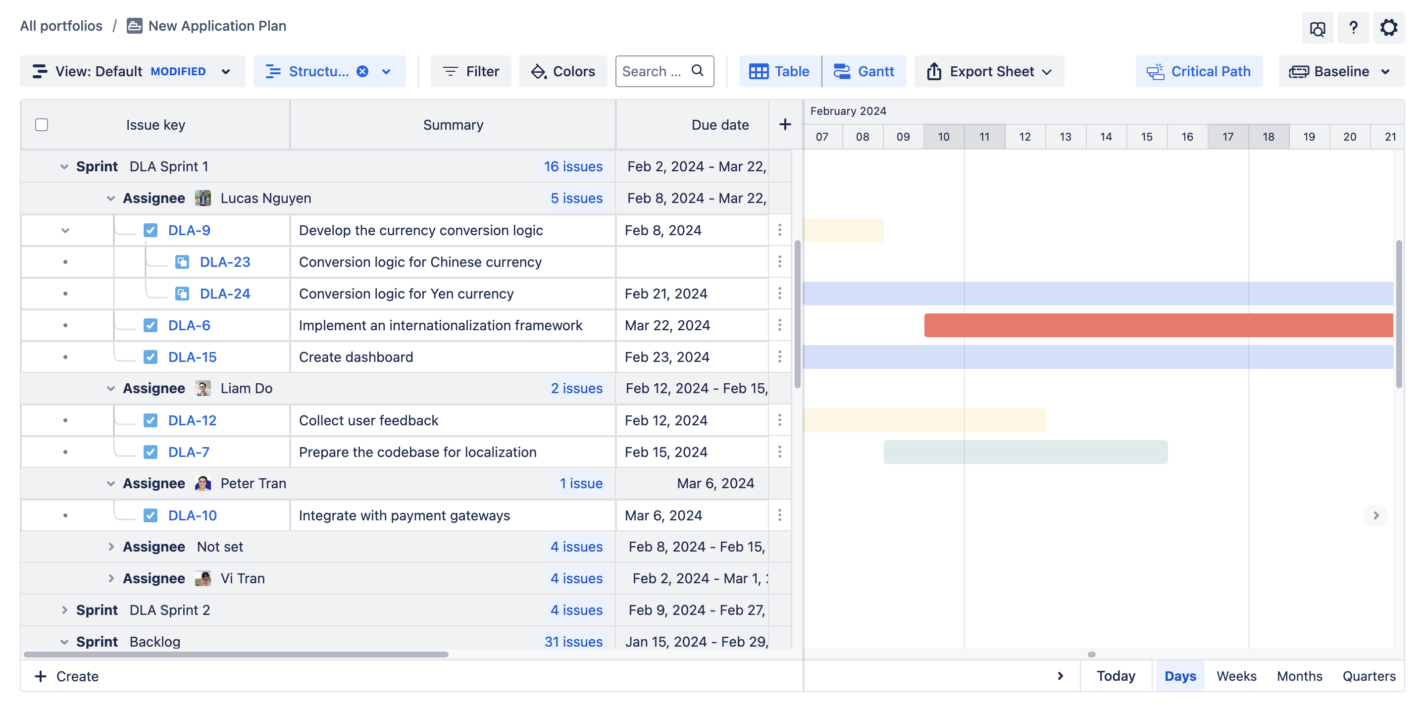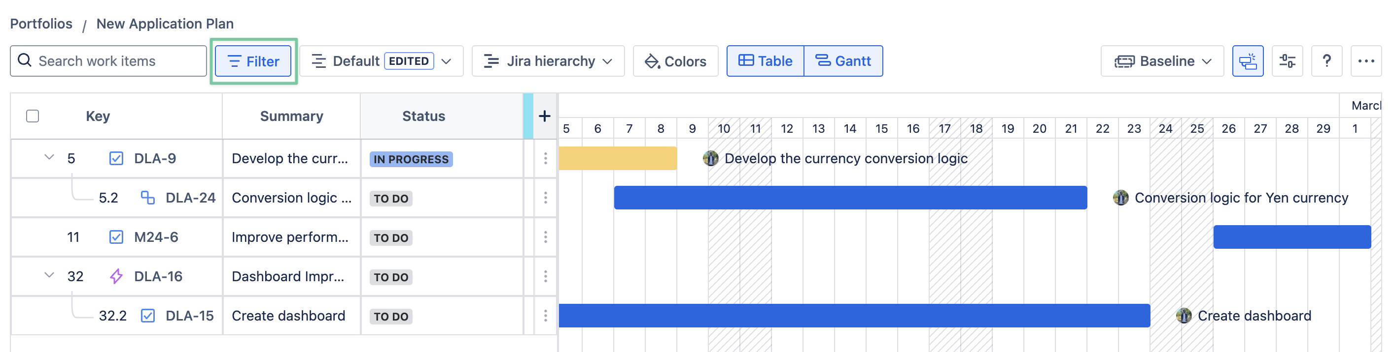 View represents how the app visualizes your Jira issues and projects in the portfolio. Each different view tells a different story based on the settings, filters, and structure of the table.