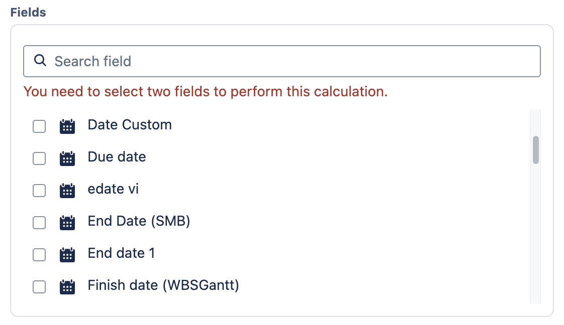 Selecting this type allows the Smart column to display calculated days for various tasks. When choosing fields used in the Date-type Smart column, you can pick either Jira default fields or custom fields in your instance.