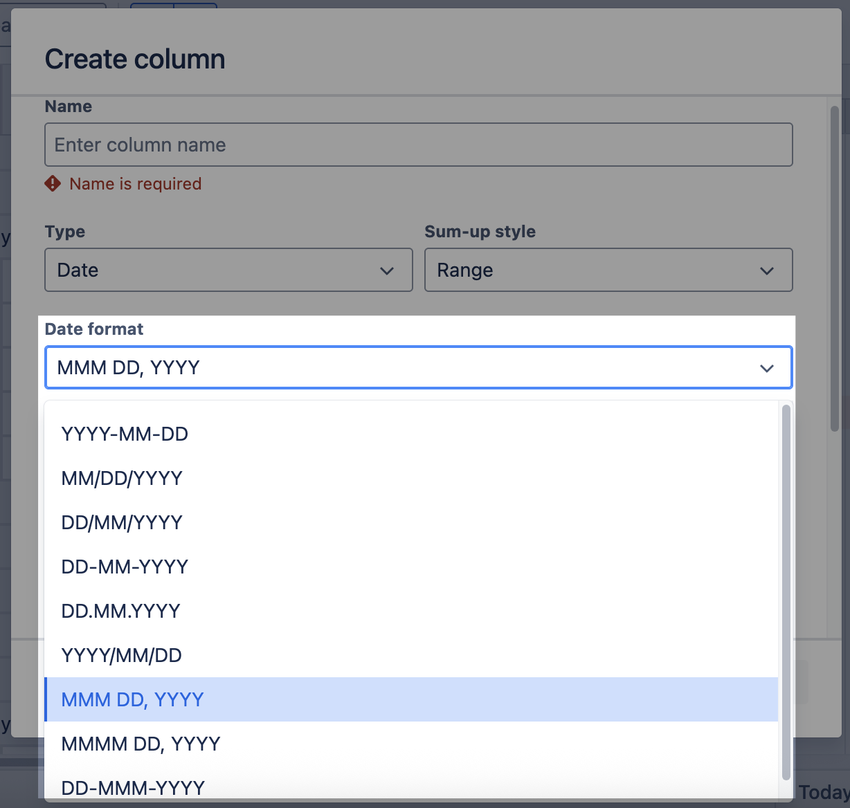 Currently, GanttTable allows creating 3 different Types: Date, Number, and Time Estimate, and each type uses a different set of Sum-up styles.
