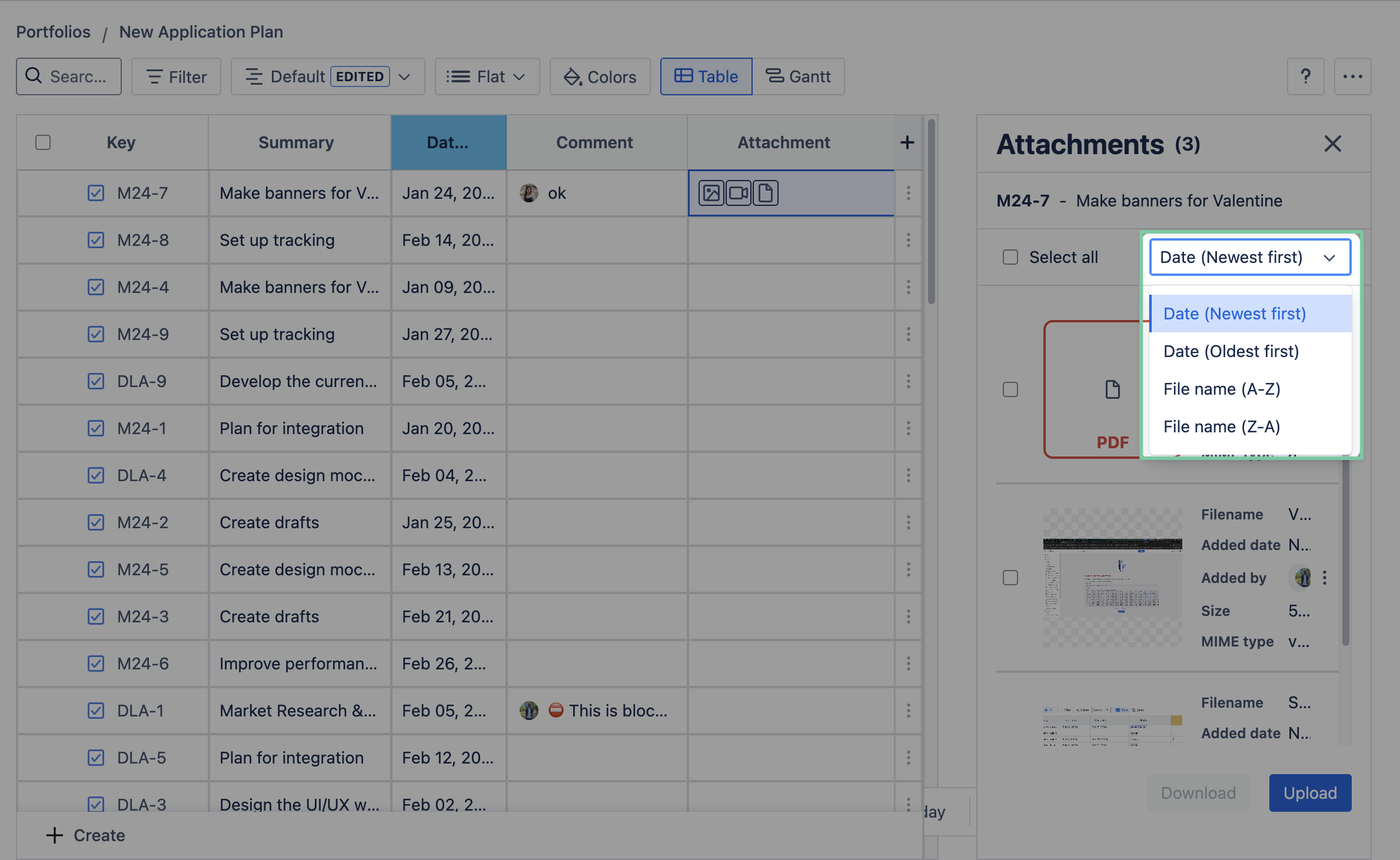 Besides visualizing the attachment column in the table view, users can add or remove attachments like files, images, or videos directly within GanttTable.