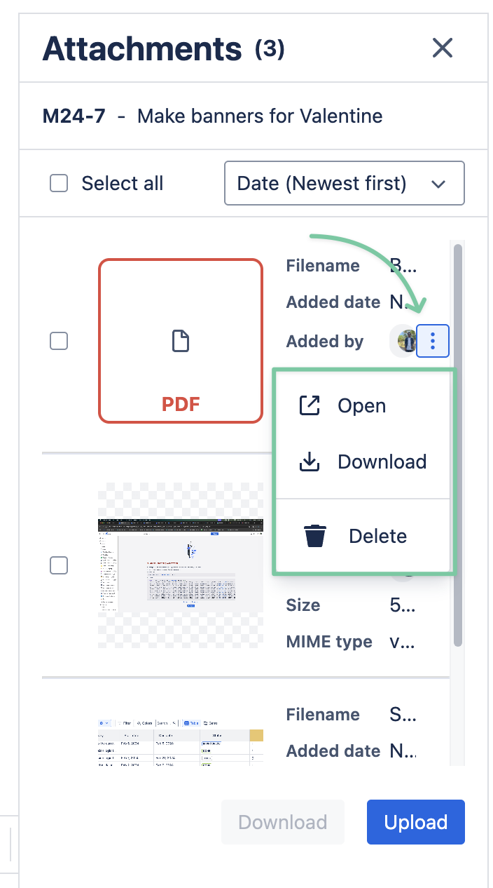 In the Attachments section, you can: